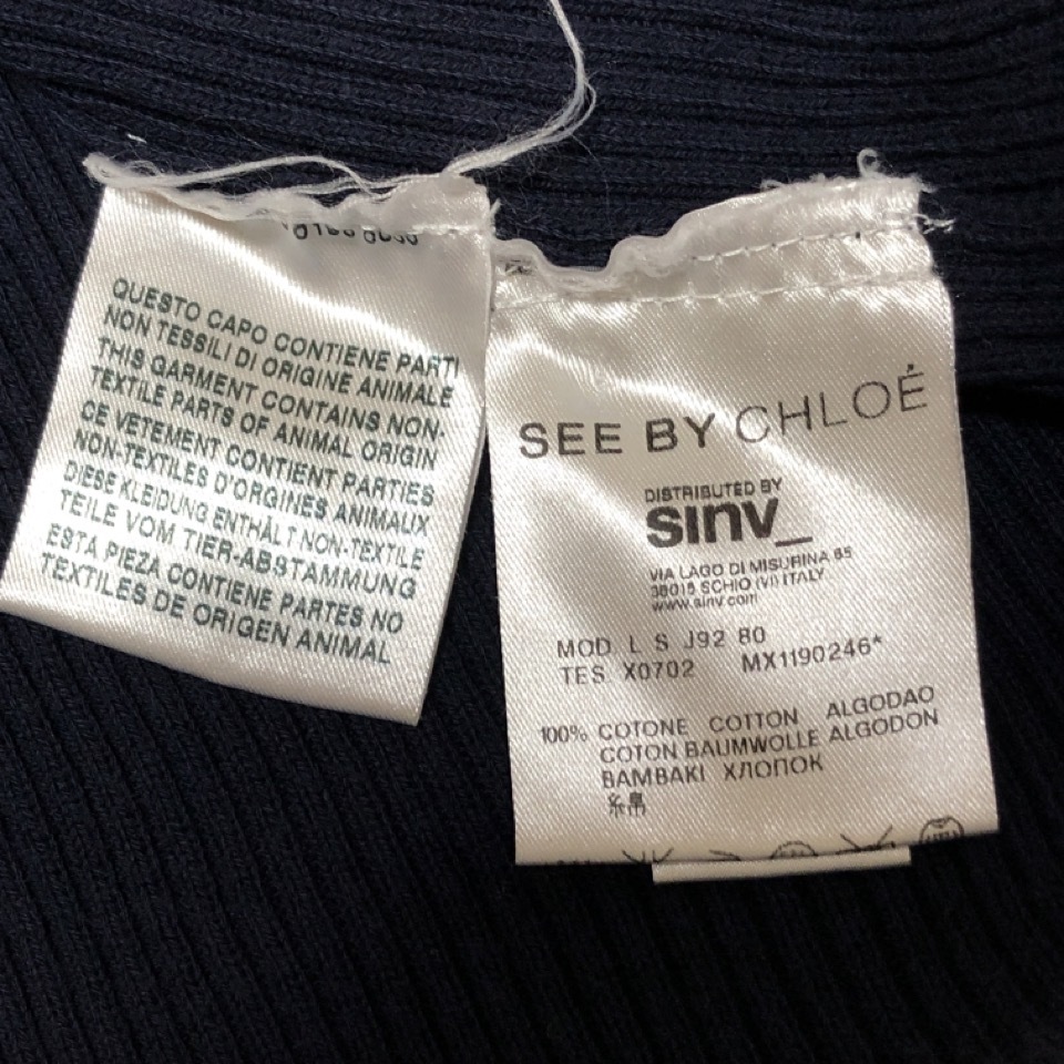 1円~ 60 A-2-64 SEE BY CHLOE シーバイクロエ ロング カーディガン ネイビー サイズ40 コットン 日本の代理店表記有