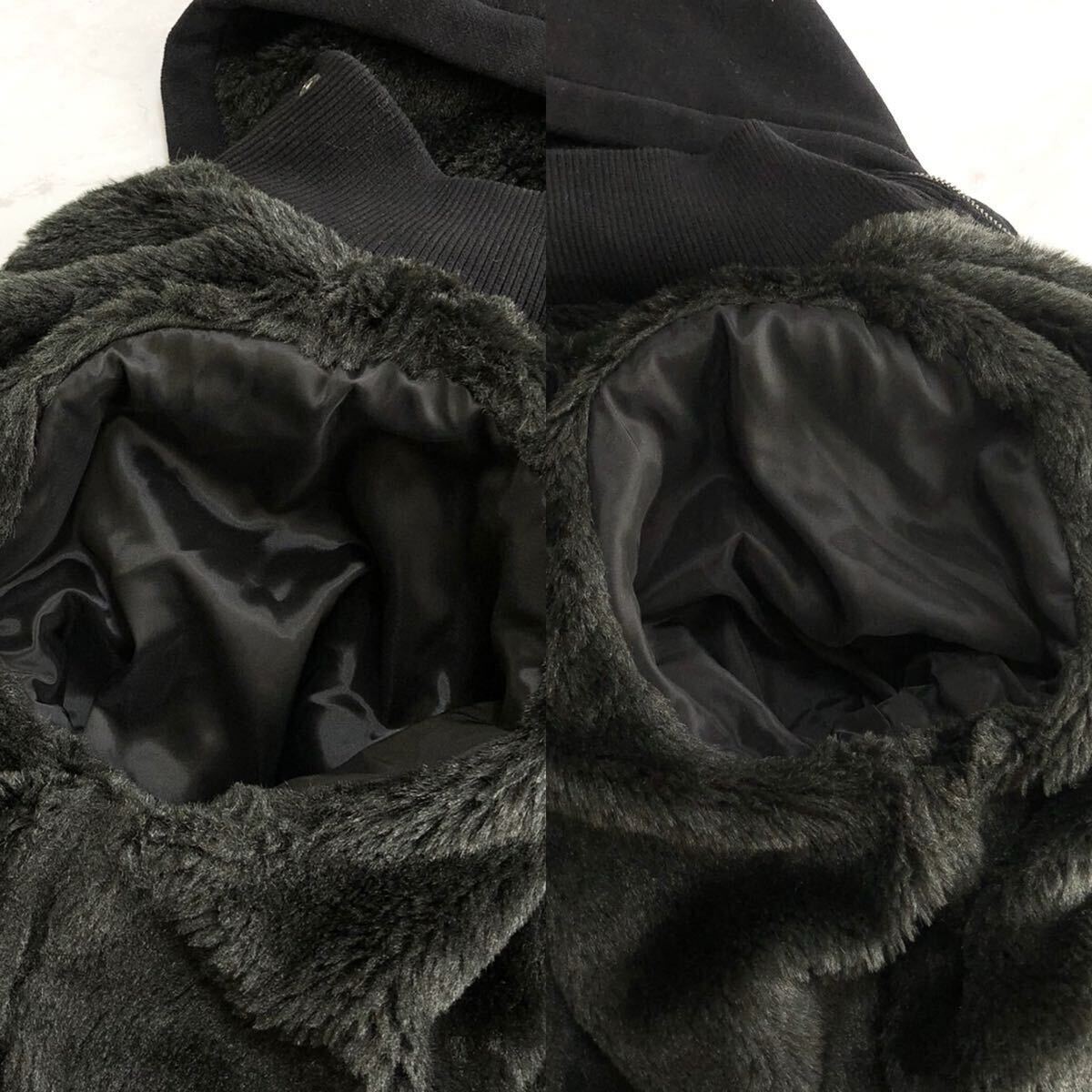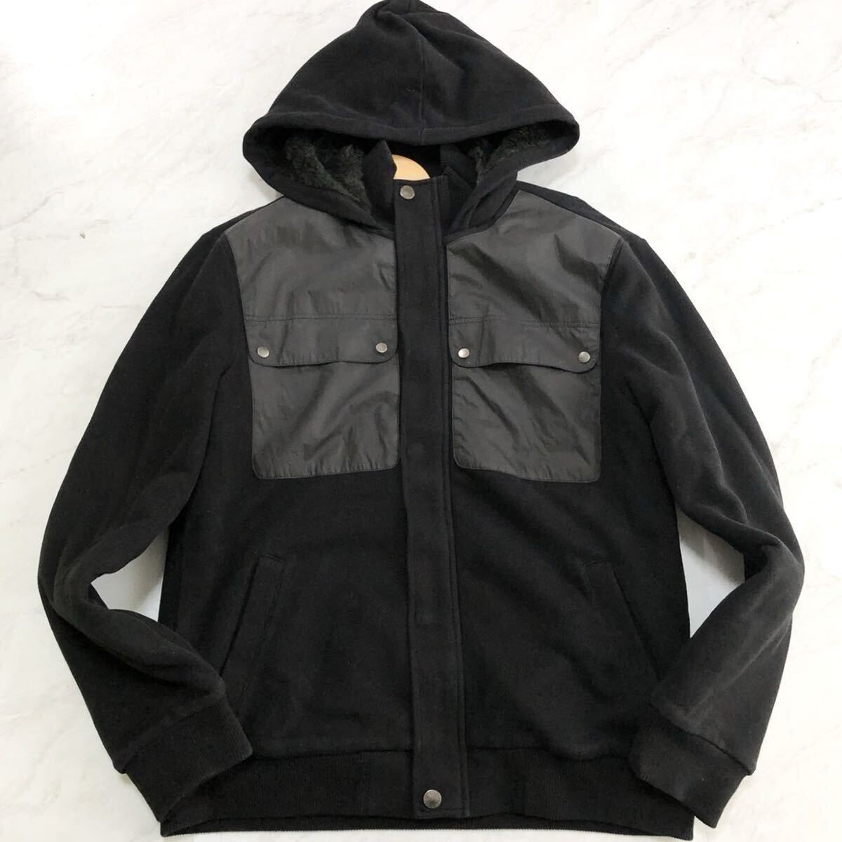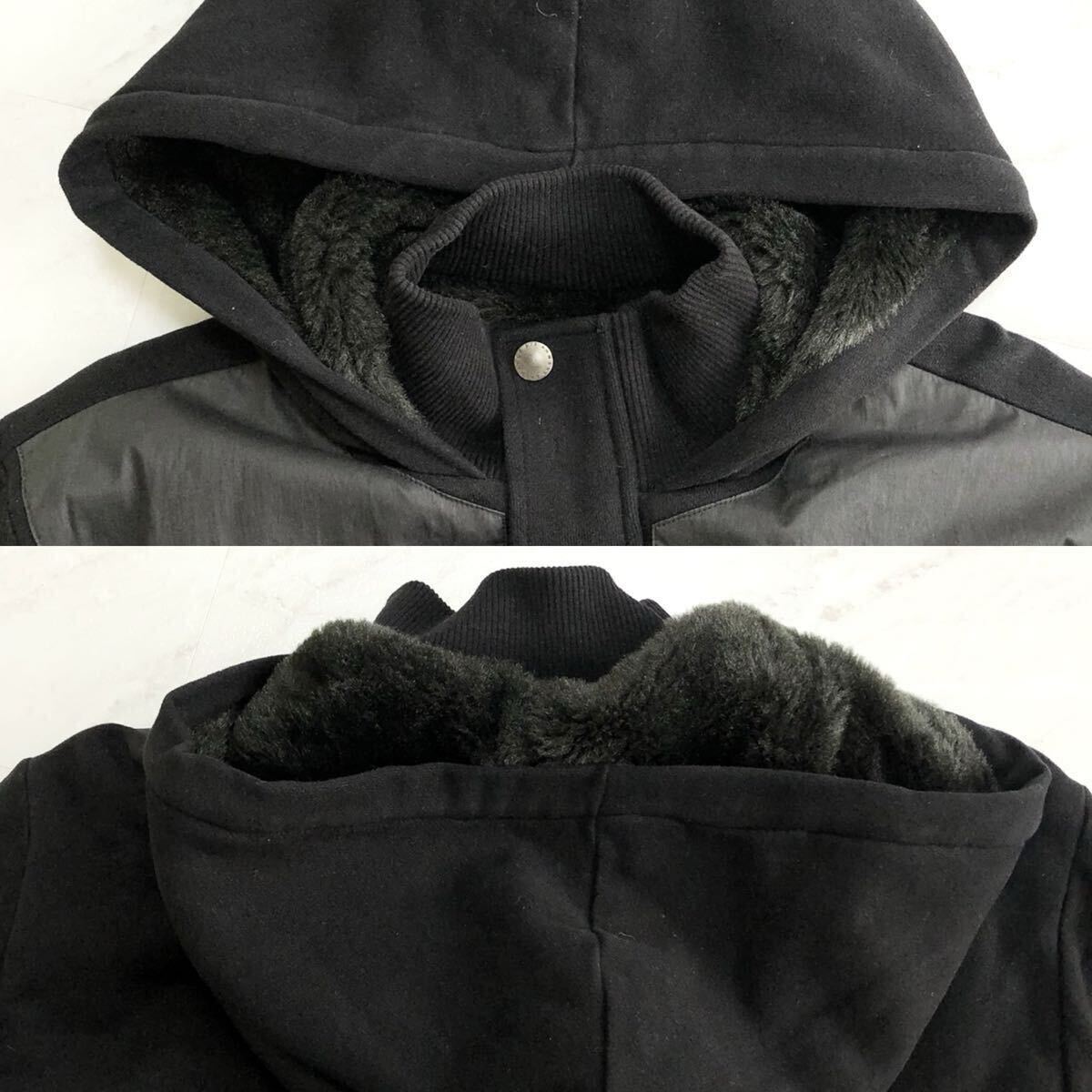 美品/XL相当●ARMANI EXCHANGE アルマーニ エクスチェンジ エコムートン ジップパーカー 裏地ボア ナイロン切替 ジャケット 黒 メンズ 極暖