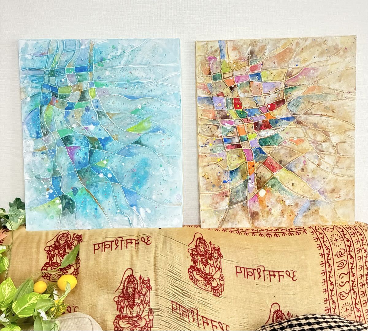 風に踊るような秋色や、キラキラした金の光が、カラフルにきらめく作品です。