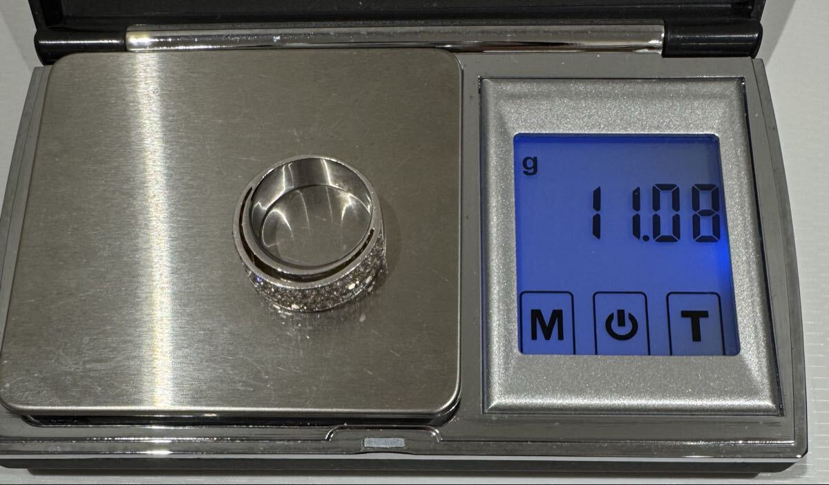 K18ホワイトゴールド製、約11.0gのしっかりとした重量感があるハーフエタニティリングです。