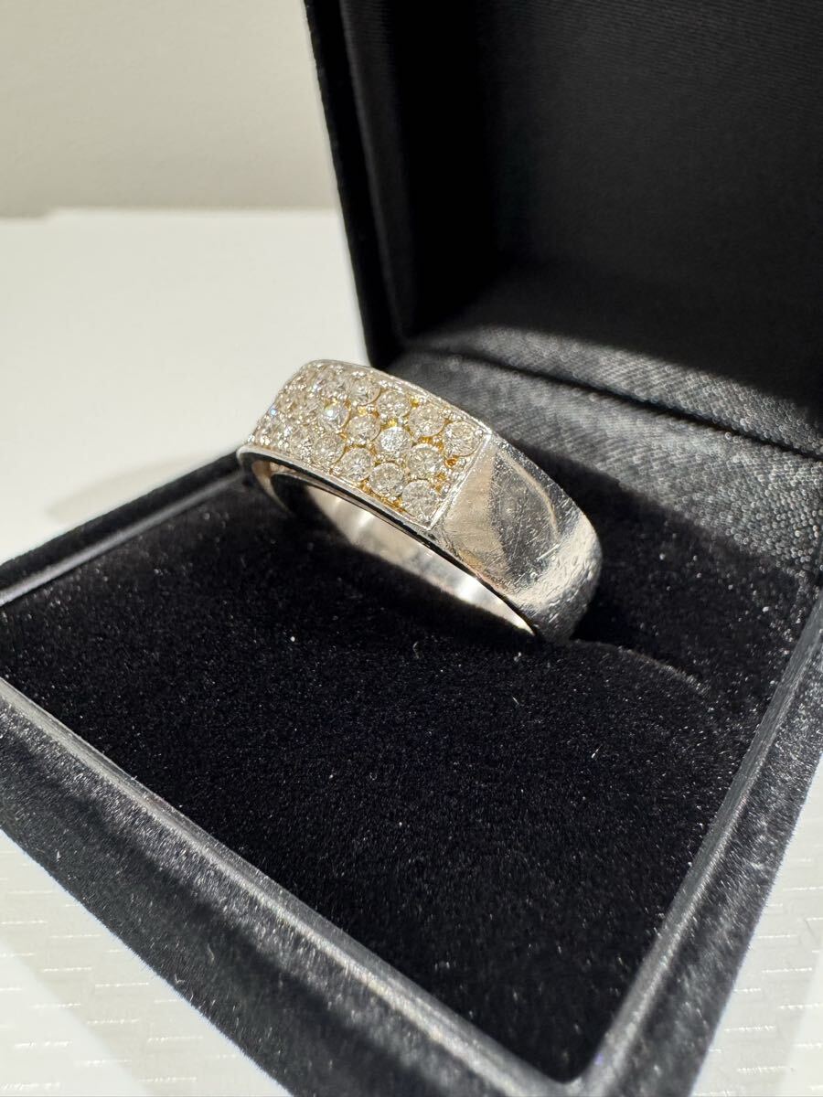 ダイヤモンドは合計1.43ct、繊細なパヴェセッティングで二重にあしらわれたデザインが、指元に華やかな輝きを添えます。