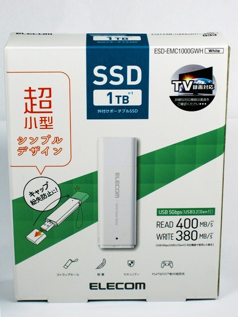 ELECOM 外付けポータブルSSD 1TB ホワイト (ESD-EMC1000GWH)です。