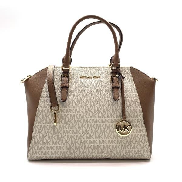 MK マイケルコース トートバッグ MKシグネチャーロゴ ホワイト ブラウン 白 茶色 ファスナー開閉 レディース かばん 管理RY25005287 商品の状態:Bランク(良い) キズやスレ、ハンドルに型崩れが見受けれます。 使用ダメージを感じる箇所が見受けられますが十分使用可能な状態です。 付属のストラップで2WAY利用が可能です。 商品名:MK マイケルコース トートバッグ MKシグネチャーロゴ ホワイト ブラウン 白 茶色 ファスナー開閉 レディース かばん 管理RY25005287 サイズ:約32cm×27cm×13cm 付属品:画像内のものが全てとなります よくご確認の上、ご入札ください。 中古品につき多少の汚れや傷はある物と理解頂き御入札下さい。 Good | |||||||||||
