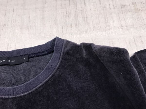 レイジブルー RAGEBLUE ストリート モード ノームコア 古着 ベロア ベルベット 良生地 光沢 トレーナー トップス メンズ L 紺 です。