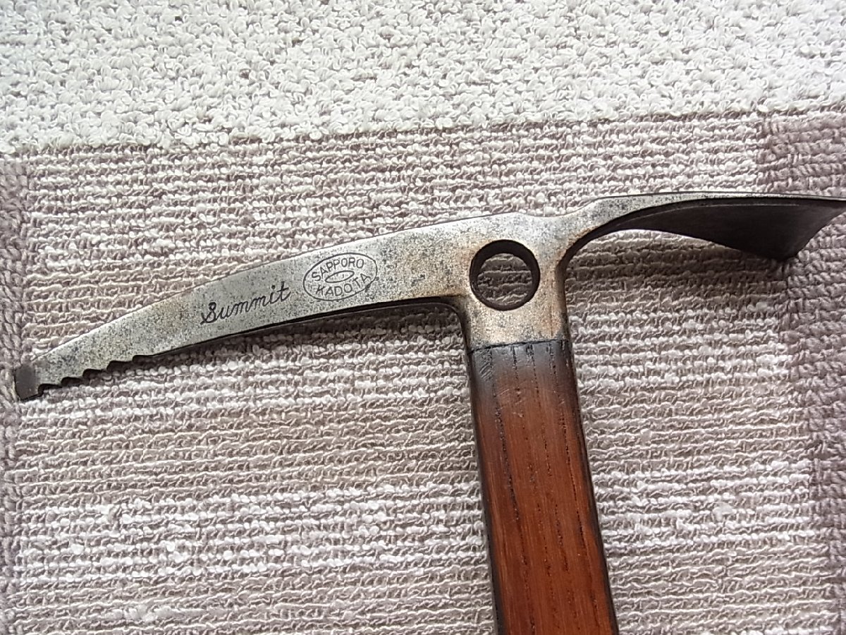 ●●●【日本製のSAPPORO KADOTA木製手作りピッケル サイズ長さ64.5cm総重量600㌘外観大きな損傷無し綺麗な良い状態ですが現在は金属製の軽量の製品が多く有ります※経年の使用観&木製の経年の変色有り※現在は傷みも無く使用は可能と思いますが【当方の見解です】実用は保証できません※近年の軽量の金属製品をおすすめ致します展示用か参考品とご理解下さい。
