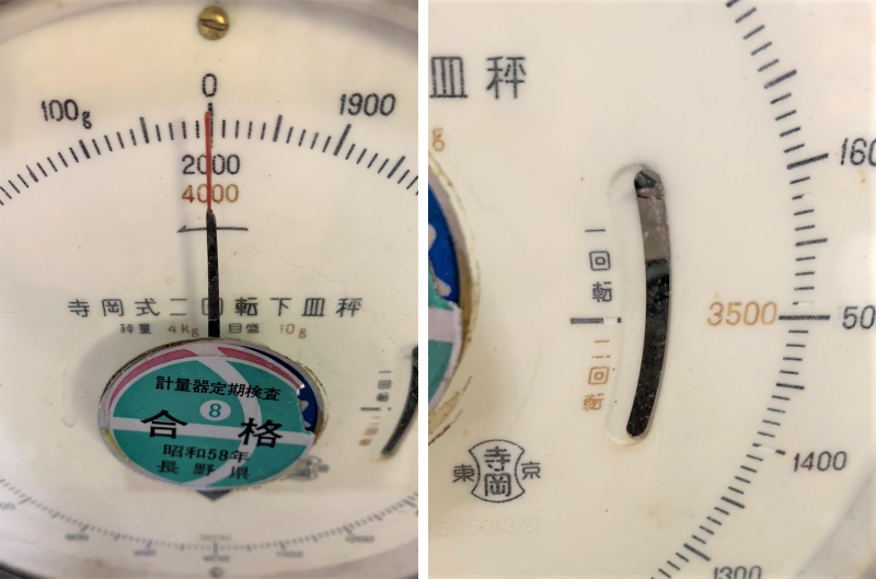 ▽寺岡式 二回転下皿秤 秤量4kg 目盛10g 株式会社寺岡精工研製 現状品▽005249