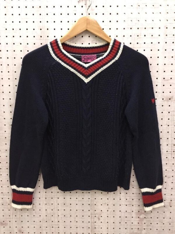 FIORUCCI フィオルッチ キッズ 子供服 サイズ150 レトロ モード かわいい コットン混 Vネック チルデン ニット セーター トップス 紺