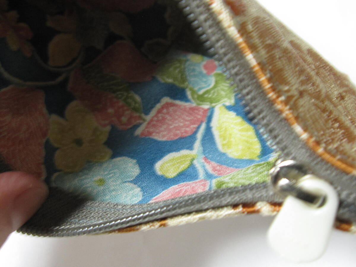 内側は、古布 (花・模様 : ちりめん)  ◎ファスナーは、グレー系 (つまみ付き)