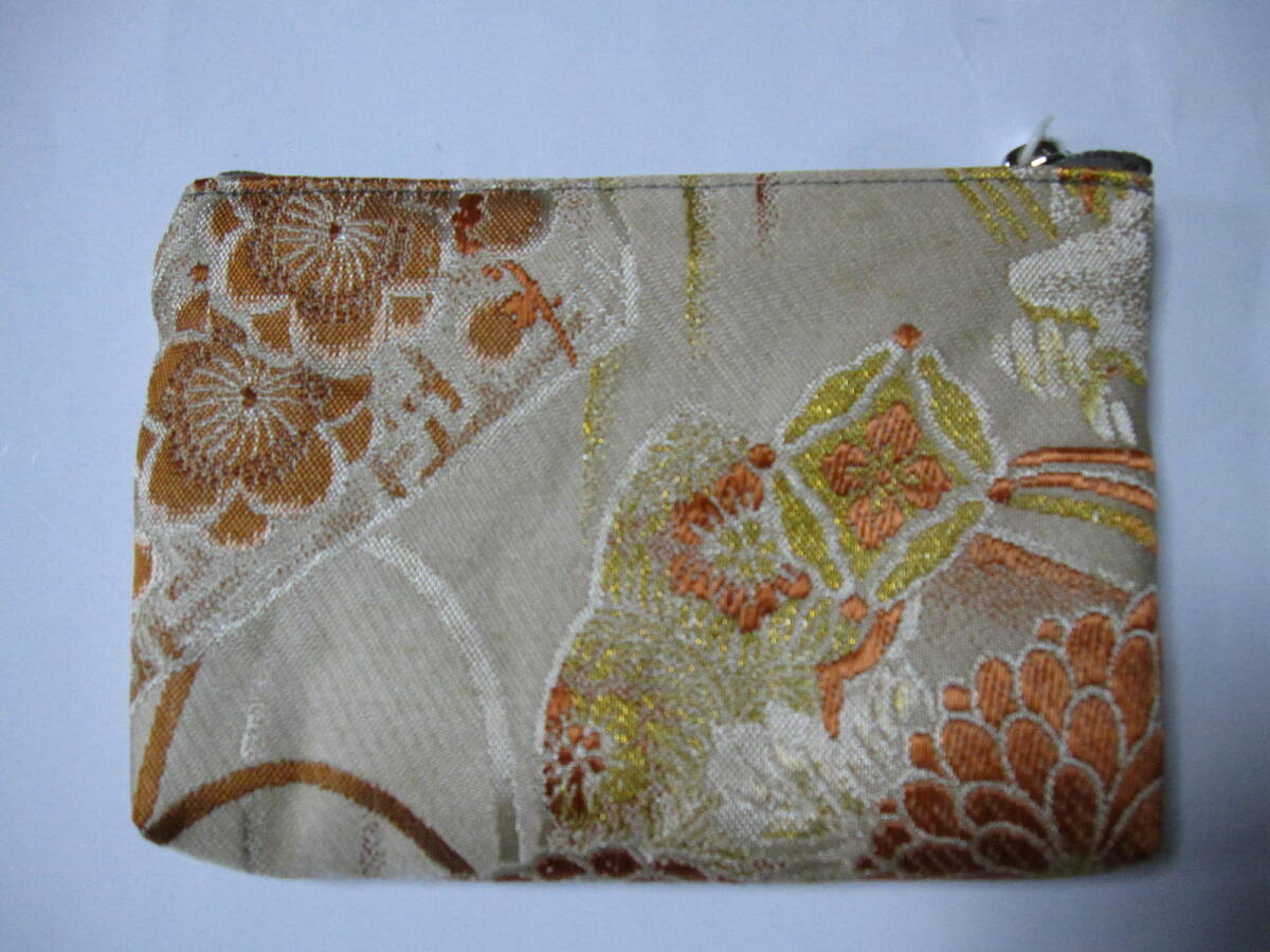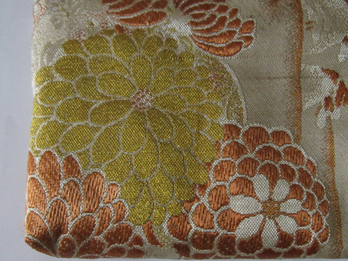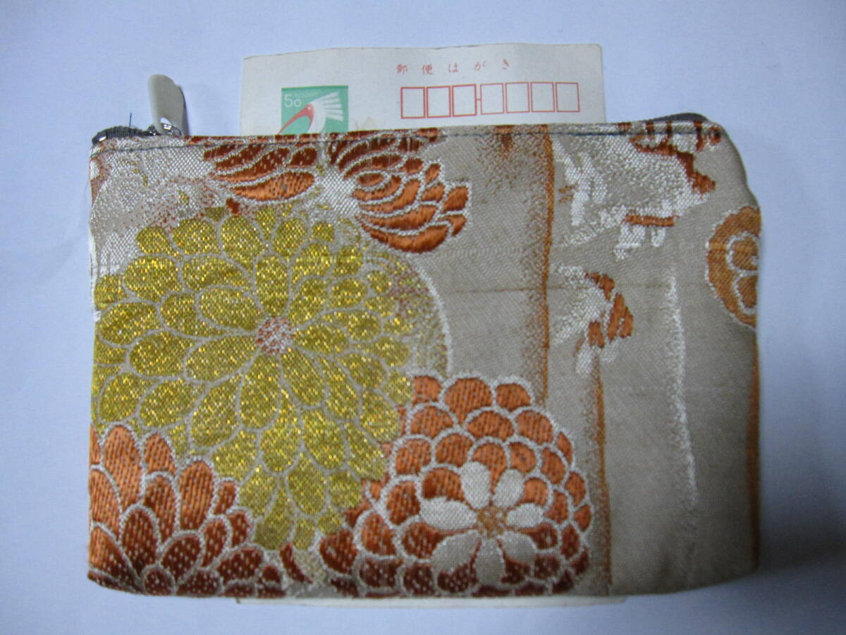 手作り 着物リメイク 大 ポーチ 大輪 花 菊 模様 華 レトロ 帯 古布 ハンドメイド 小物 充電器 数珠 財布 眼鏡 男女 兼用 可愛 お洒落 幅広