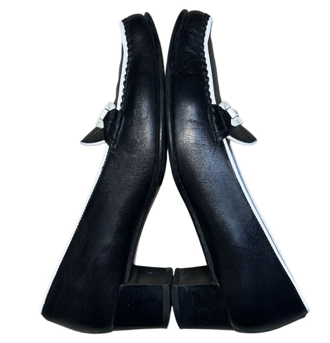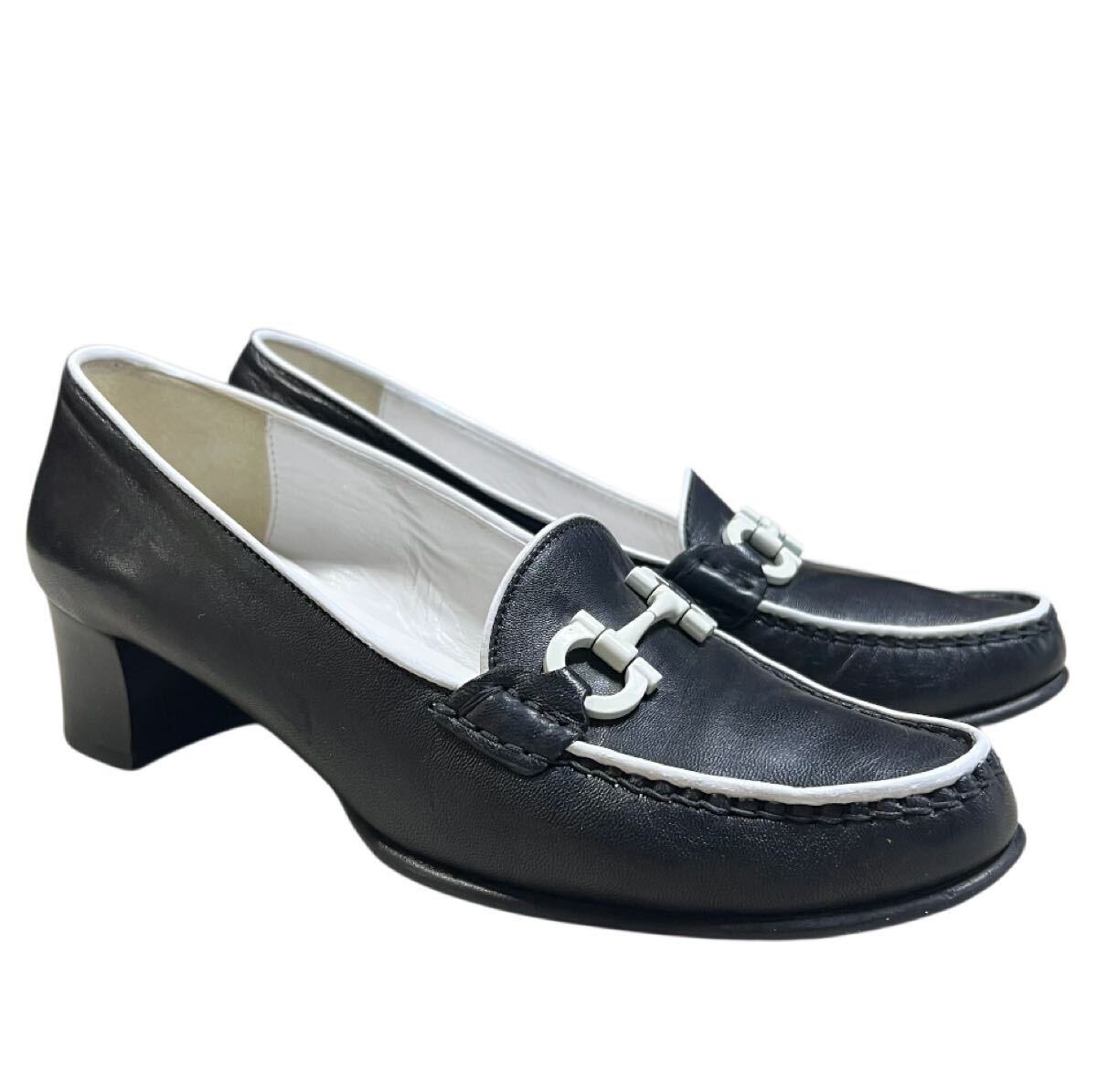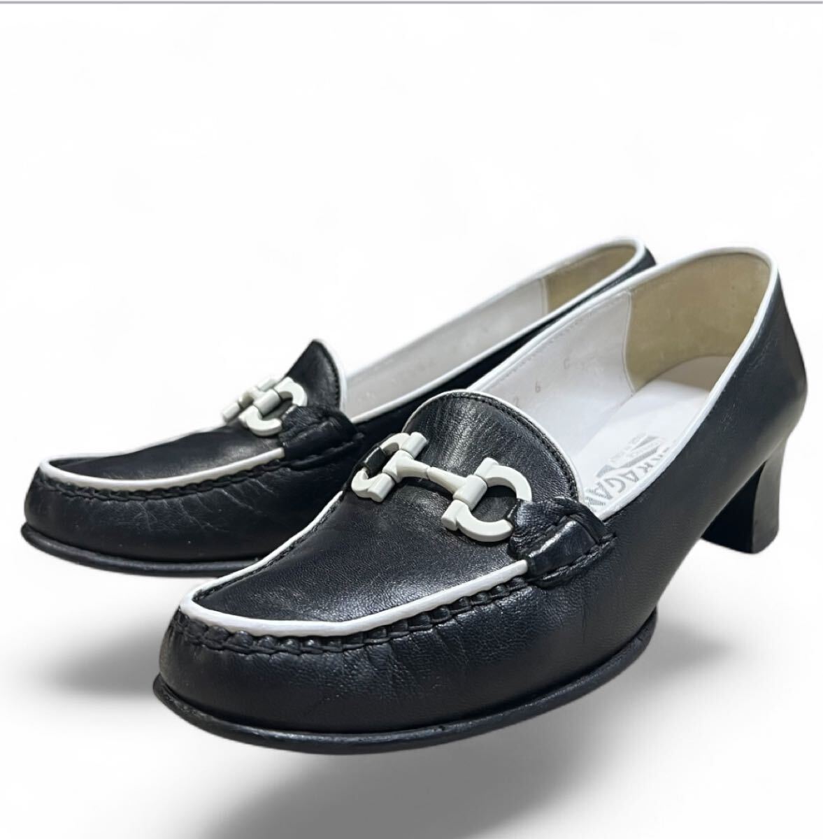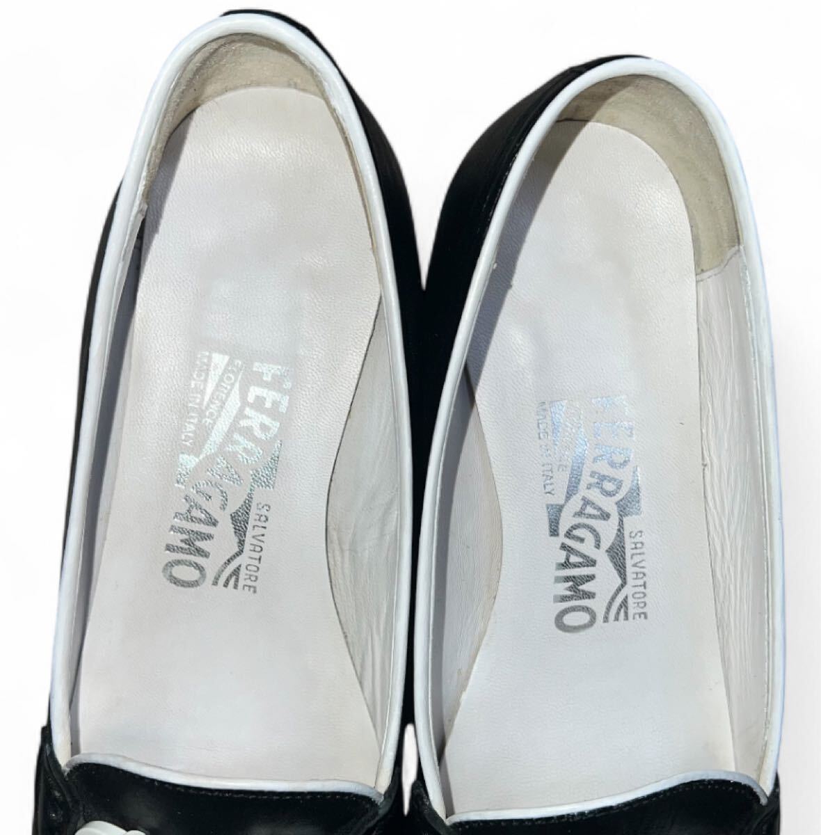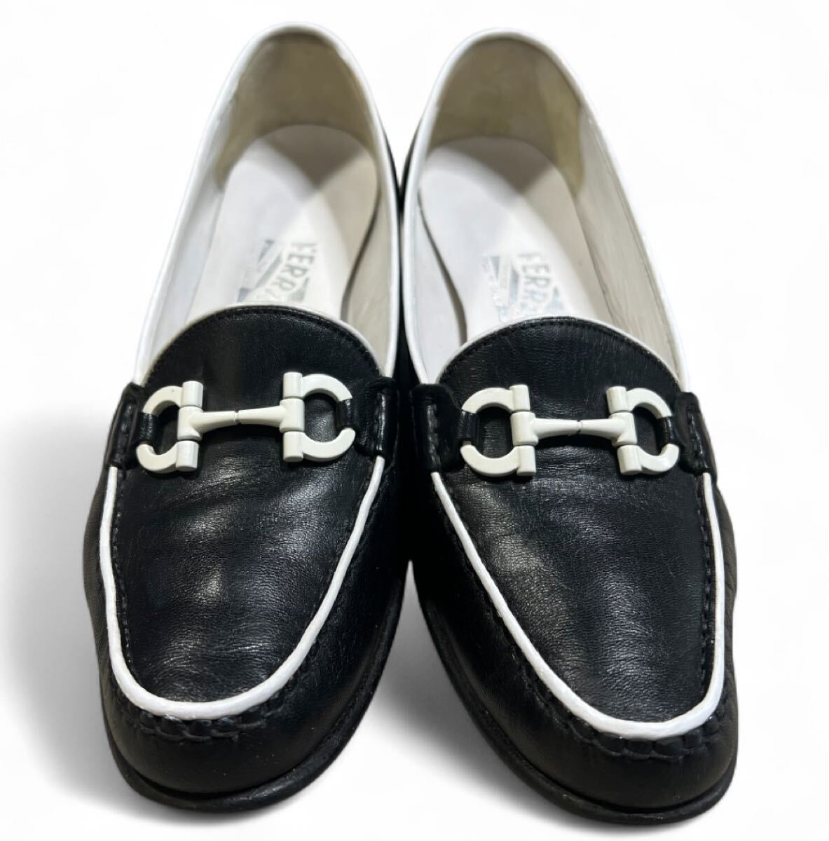 ● 美品 イタリア製 サルヴァトーレフェラガモ ガンチーニ レザー パンプス ローファー ホワイト×ブラック