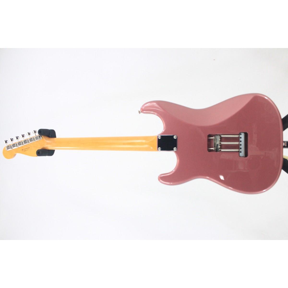 2024年製日本が誇るギターヒーロー、charの最新シグネイチャーモデル!本人が長いキャリアで使用している1959年製ストラトキャスターを再現した『CHAR STRATOCASTER BURGUNDY』が入荷しました。演奏性を決めるネックには、ローフレット部分が薄く、ハイフレット部分に厚みがあり、ジョイント付近のネックヒールカットもしっかり施された本人機の特徴的なシェイプを再現。本人実機の緩いテンション感を再現するためネックポケットを通常より深く設計、豊かな倍音を生み出し、charのような高めの弦高でも軽いタッチで演奏出来ます。ピックアップにはCharの温かく太いトーンを再現するため開発されたオリジナルモデルを搭載。トレモロブロックのキャビティが通常よりも広く設計され、ダイナミックなビブラートプレイを可能にしています。目を引くマッチングヘッドのカラーリングは経年変化により落ち着いたバーガンディーミストメタリックを再現したオリジナルカラー“Char Burgundy”を採用しています。ブルースやクラシックロックで、ホットなギタープレイをこなすのが似合うアダルトな一本です!