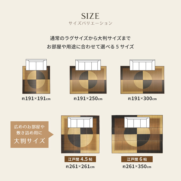 上質な国産い草のみを使用した国産のい草ラグ。 い草の「染」にもこだわり、職人の業で鮮やかな色合いに染め上げました。 大胆なデザインですが北欧家具やモダンなテイストにもマッチするシックな色合いです。 厚みは、約4mm程度です。 縁は、約2cm幅です。 細めにし、柄を引き立てるようにしています。 裏面は、不織布に滑りにくい加工を施した裏有りタイプです。 日本の職人がひとつひとつ丁寧に織り上げた 繊細な美しさと肌触りを心いくまでお楽しみいただけます。 【い草の特徴】 ・室内の湿度を調整してくれる優れもの。 ・保温・断熱の効果があります。 ・弾力性・消音性がある安心素材。 ・空気浄化やアロマテラピー効果があります。 【お取り扱いについて】 ・色止め加工を施してありますが、自然素材のため、色落ちする場合があります。 ・自然素材のため、サイズに多少の誤差が生じます。 ・自然素材のため、カーペットシャンプー・洗剤などのご使用はおやめください。 ・抗カビ加工を施してありますが、自然素材のため、使用する状況によってはカビが発生する場合があります。 ・湿気の多い場所でのご使用はお避けください。 ・抗菌・防臭効果とは、い草の繊維がもつ特性です。 い草の繊維には、「細菌」の繁殖活動や増殖を抑制する特性があります。 細菌の増殖が抑えられると、汗をかいたときなどにでる「いやな臭い」の原因となる悪臭の発生を防ぐ効果があります。 <収納の際は> ・収納の際は、掃除機などで表面の汚れをとり、日陰で干した後、湿気の少ない乾燥した暗い場所での保管をおすすめします。 約191×250cm ■生産地:日本 ■素材・成分:表面:国産い草100%紋織 裏面:不織布(滑りにくい加工) 縁:綿100%四方縁 ※抗カビ、大判サイズあり 【画像について】 ・商品は、モニターによって色合いが異なって見える場合があります。 ・サイズによりデザインが異なります。 【お取り扱いについて】 <敷く前に> ・ラベル取り付けの際に打ち付けているタグピンはハサミなどで完全に取り除いてからご使用ください。 ・ご使用になられる前に、乾いた布で表面を軽く拭いてください。 ・強く拭いたり、濡れた布で拭くと変色する恐れがありますのでご注意ください。 ・直射日光が強く当たる場所でのご使用はおすすめできません。 日焼けをし、変色してしまう可能性があります。 <敷いた際に> ・抗カビ加工を施してありますが、湿気の多い場所でのご使用は、カビの発生の原因となります。 時々窓を開け、換気することをおすすめします。 ・万が一カビが発生した際は、日陰で干した後、柔らかいブラシ等で掃いてください。 (直射日光が当たる場所で干すと、日焼けや変色の原因となります。) ・ジュースやコーヒーなどこぼした際は、乾いた布で拭いてください。 ・長期間敷き詰めたままにしておくと、裏面と床が密着する場合があります。 ときどき使用場所をずらしたり、日陰で干したり、または、端を持ち上げて風を通してください。 ・滑りやすい場所でご使用する際は、滑り止めの併用をおすすめします。 ----------- 着日指定をお受けすることができません 発送後、お問い合わせ番号をご連絡いたしますので 配送会社と調整をお願いいたします ----------- |