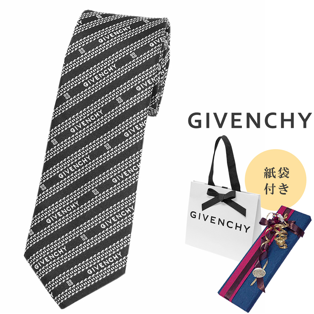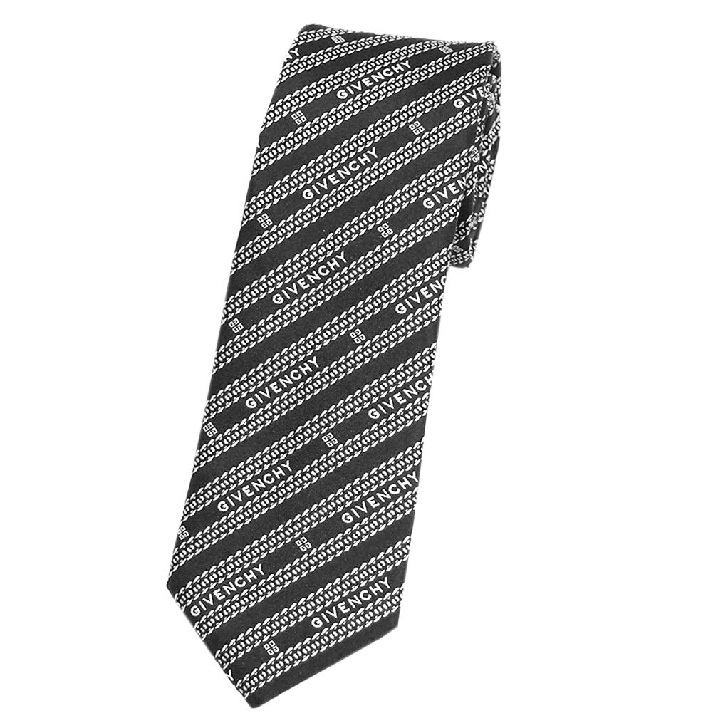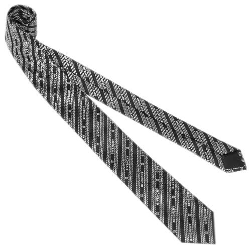 ジバンシィ ブランド ネクタイ GIVENCHY ジバンシー メンズ ナロータイ ロゴ ストライプ シルク 100% ブラック ホワイト 黒 40353