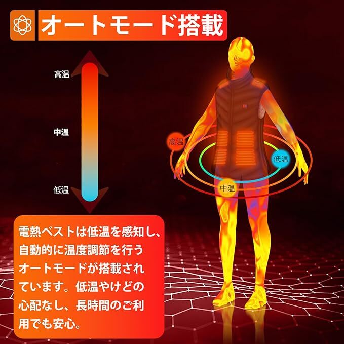 電熱ベスト ヒーターベスト 2XL 前後15箇所発熱 前後独立温度調節 三段階温度調節 速温 省エネ 防寒対策 男女兼用 水洗い可 節電 省エネ