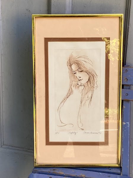 Softly(そっと)という優しいタイトルの版画が届きました【43-LP】下に描かれたサインからA.P.(作家保存版)だったことが伺えます。幸せそうな表情の猫とロングヘアの女性が微笑みながら触れ合っている様子は、見ているこちらもほんわかと嬉しくなります。きっと大切なパートナーとして過ごしていることでしょうね。イギリスにて仕入れましたが、裏側に住所が刻印されているため、アメリカの商品だと思われます。1978年のサインあり。マットにシミ、フレームに小さな傷を含みます。