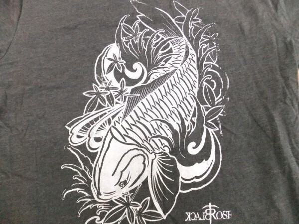 DIVIDED H&M エイチアンドエム レディース ブラックローズタトゥー 和柄 鯉 プリント Tシャツ チャコール サイズS