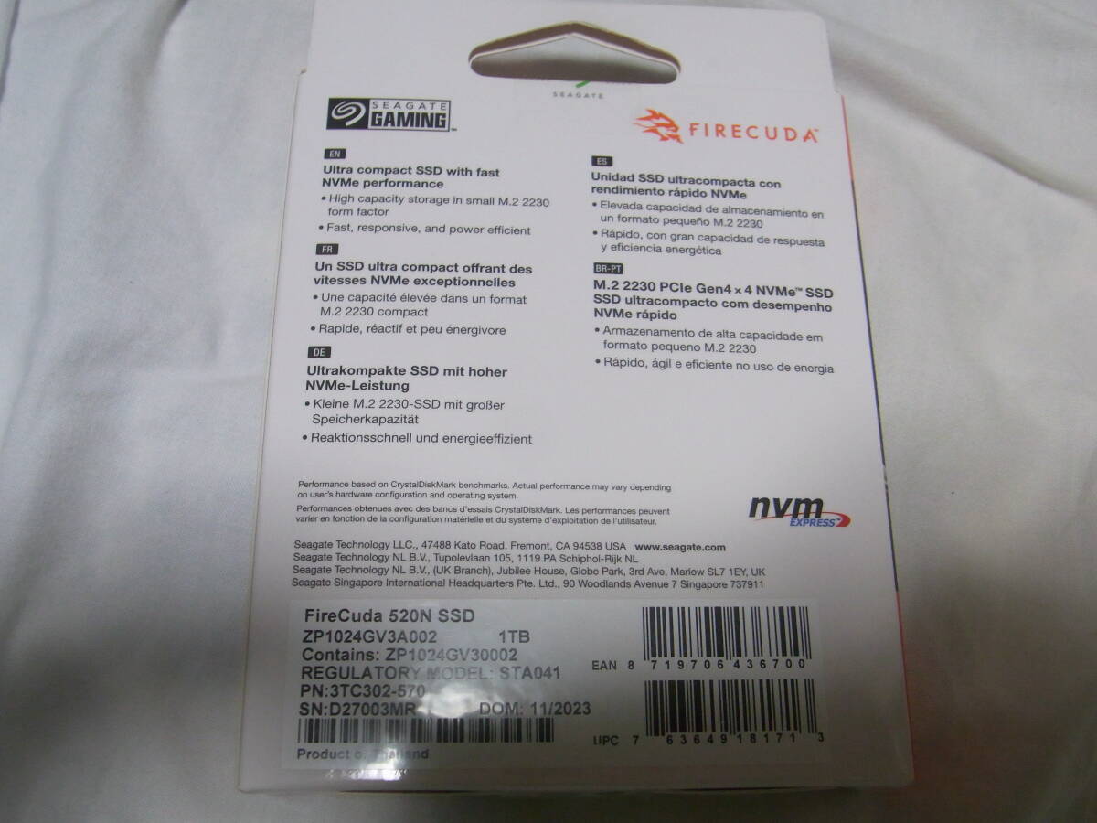 ☆Seagate シーゲイト FireCuda 520N 1TB 内蔵SSD M.2 2230 ZP1024GV3A002
