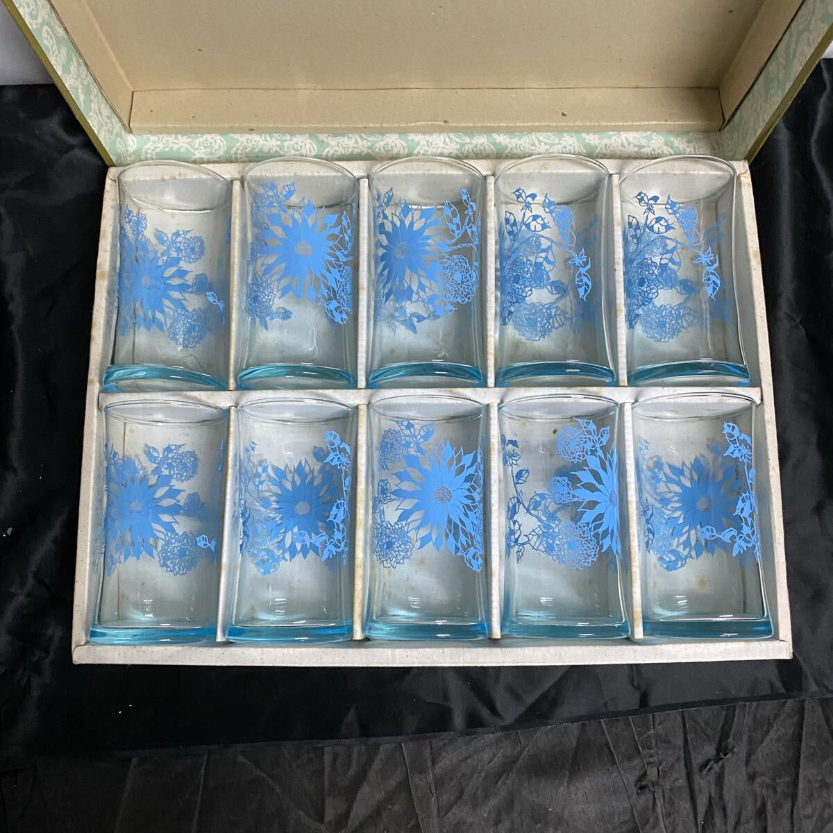未使用品 長期保管品 アデリアグラス ガラスコップ BLマイルド 10個 T-0501 ペルーの花 石塚硝子 ADERIA GLASS