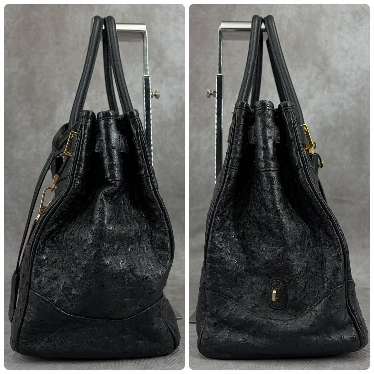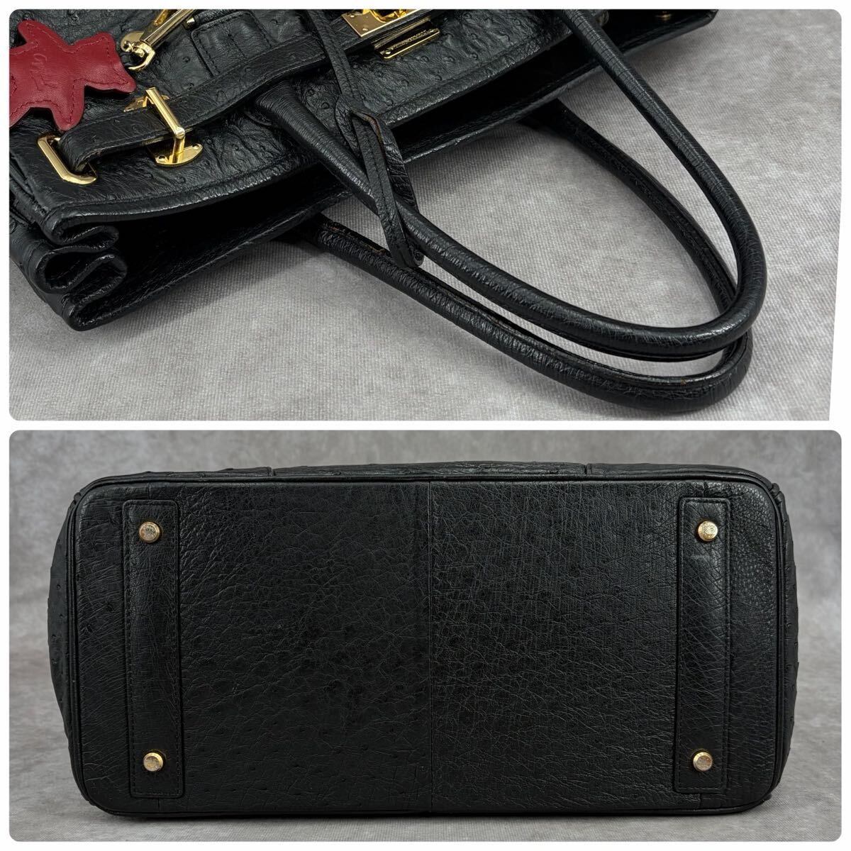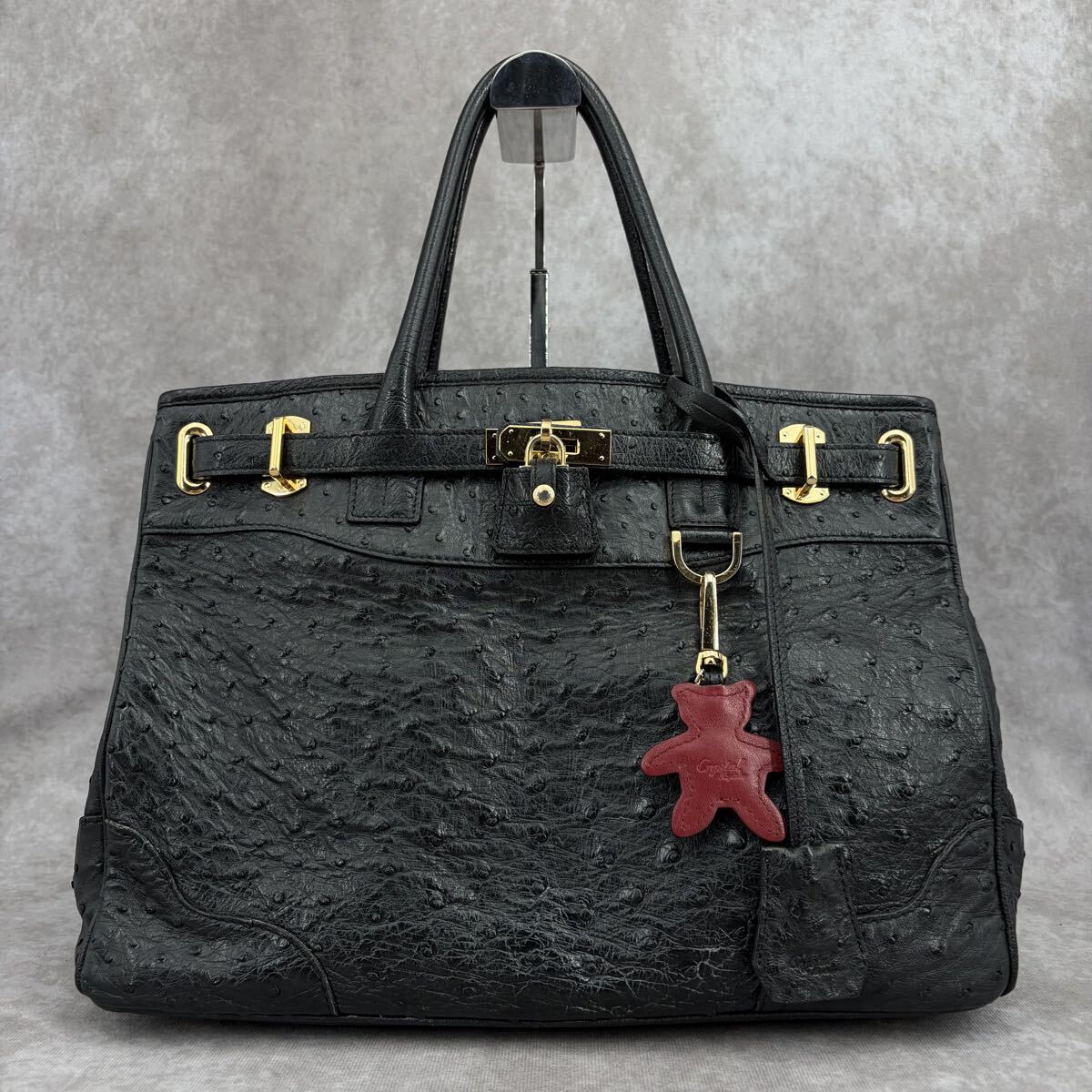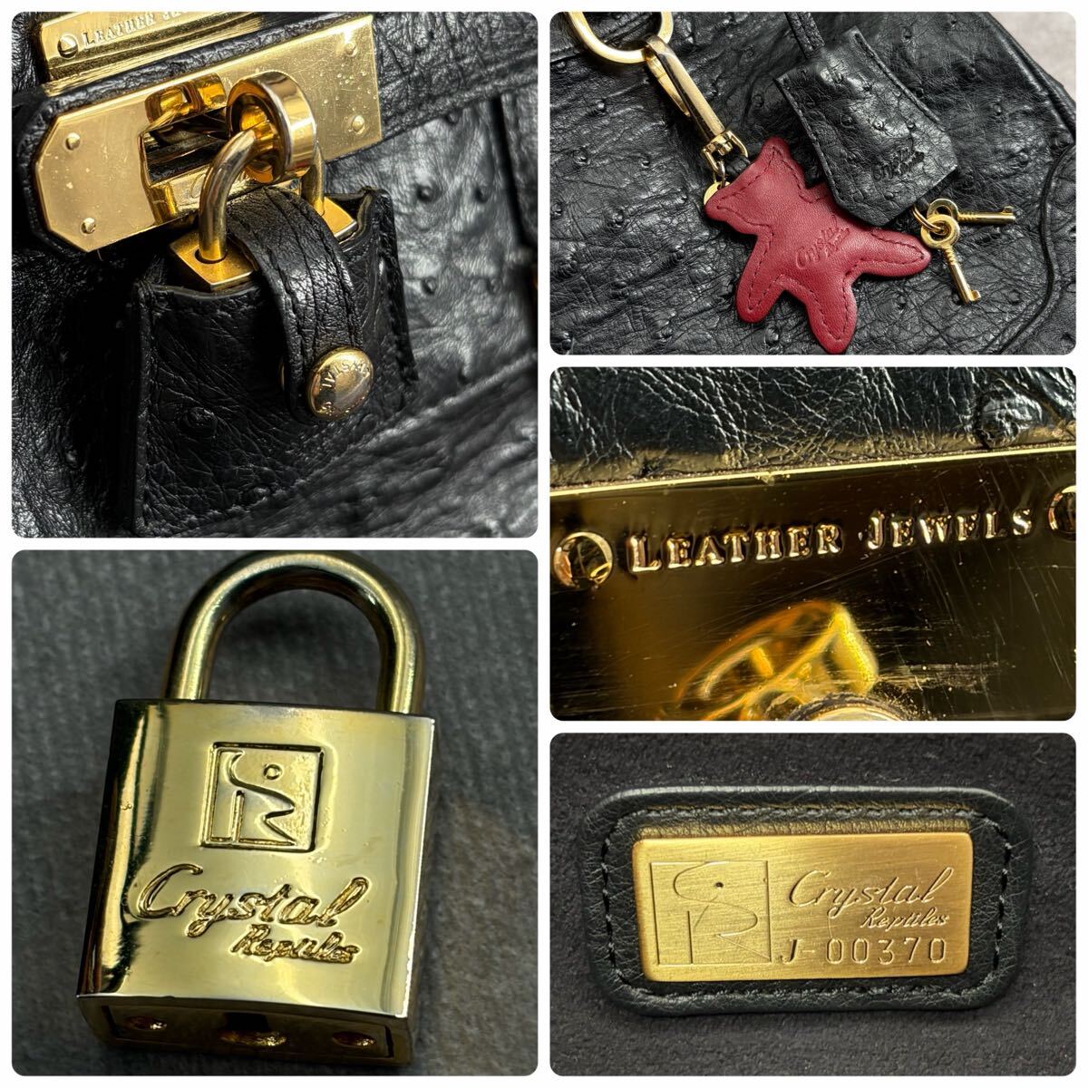 【JRA】Crystal Reptiles クリスタルレプティルズ Leather Jewels レザージュエルズ オーストリッチ ハンドバッグ トート ダチョウ革