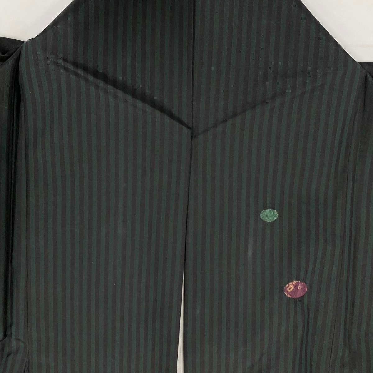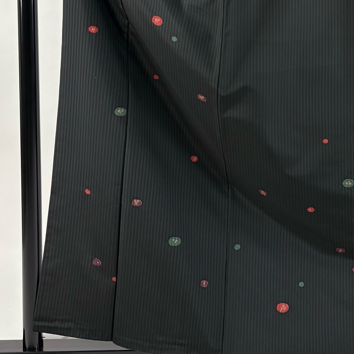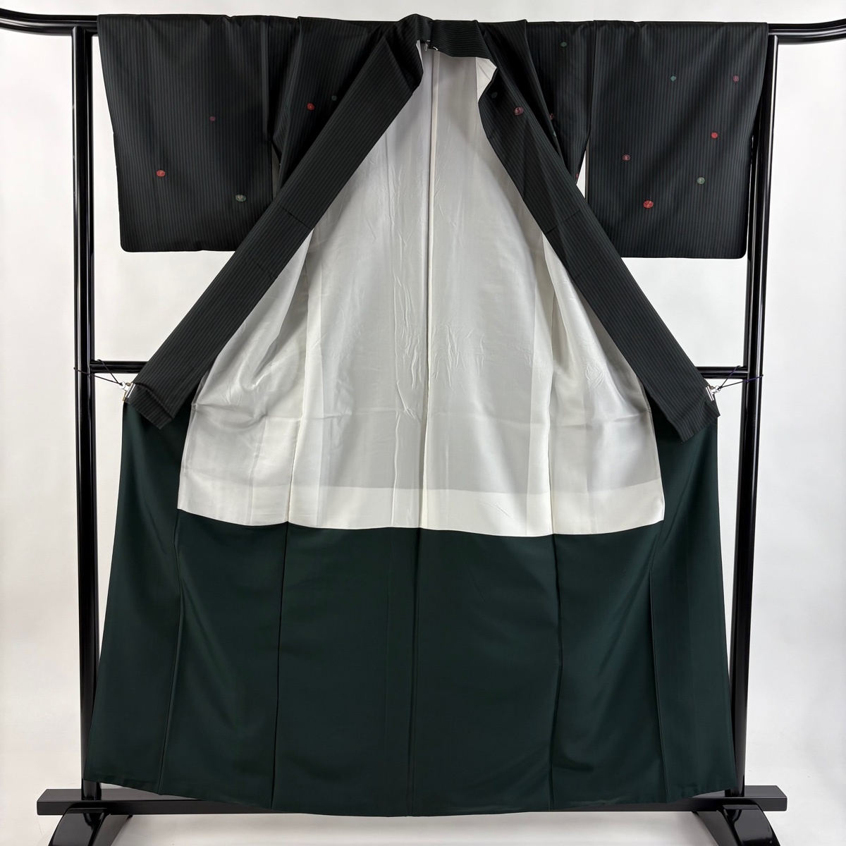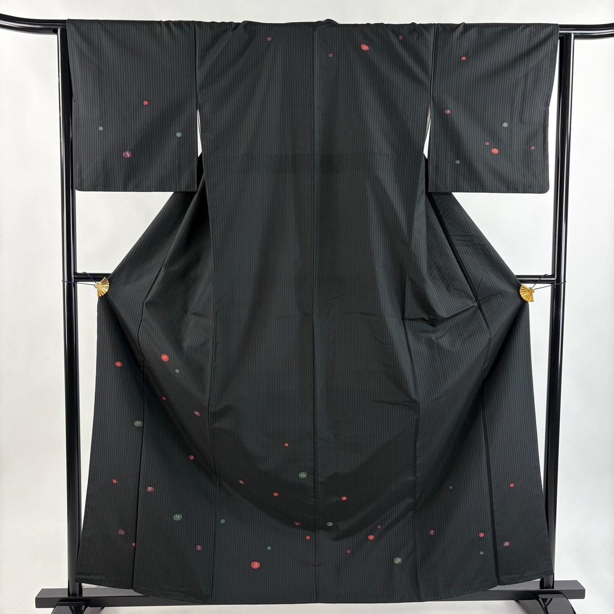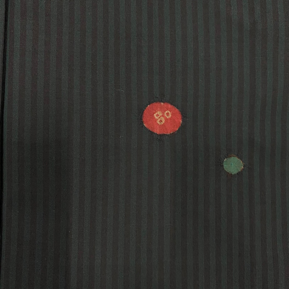 | 付下げ 美品 秀品 紬地 縞 幾何学模様 絞り 深緑 袷 身丈160 裄丈64 M 正絹 【中古】 |