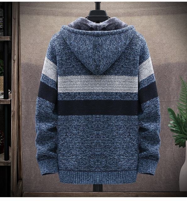 メンズ ニットカーディガン フード付き 厚手 スウェットパーカー ニットセーター 長袖 紳士 防寒 秋冬 ライトブルー XL