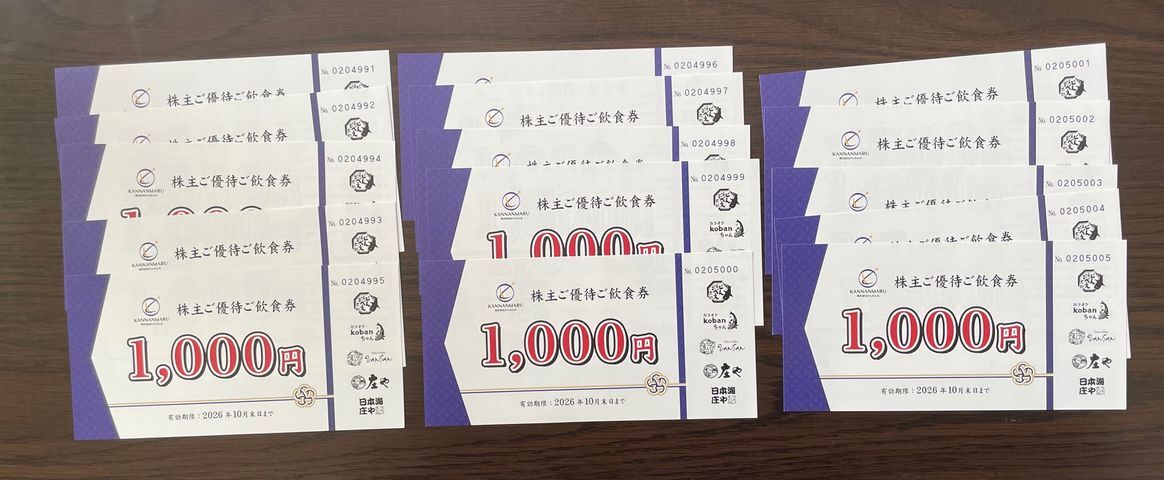 かんなん丸の株主優待券 1000円×15枚 有効期限:2026年10月末日まで