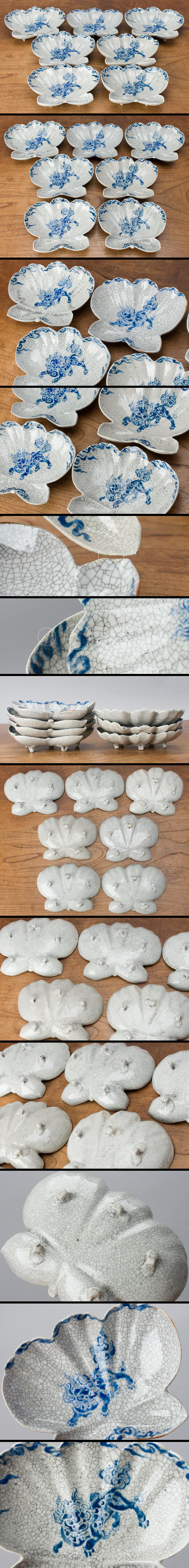 | 古清水向付7客。箱無。 サイズは、幅約14x11.5cm、高さ約3.5cm。 4枚の縁に小さな欠けあります。 他3枚は傷・直しありません。 状態、詳細は画像でご確認ください。 |