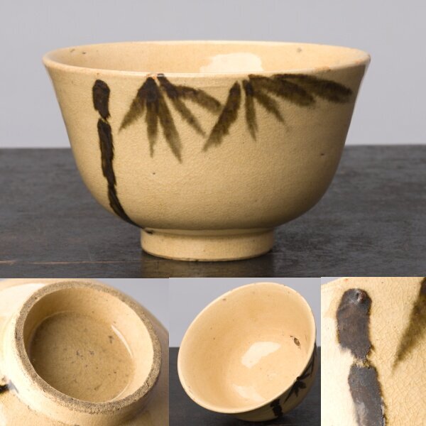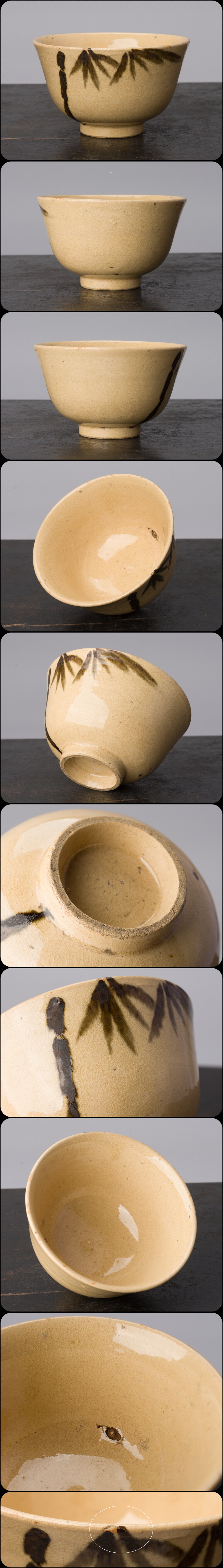 | 古い瀬戸竹図の茶碗。 サイズは、幅約10.5cm、高さ約6.5cmです。 縁に九の字型のヒビあります。 見込みにイシハゼあります。 状態・詳細は、画像でご確認お願いいたします。 |