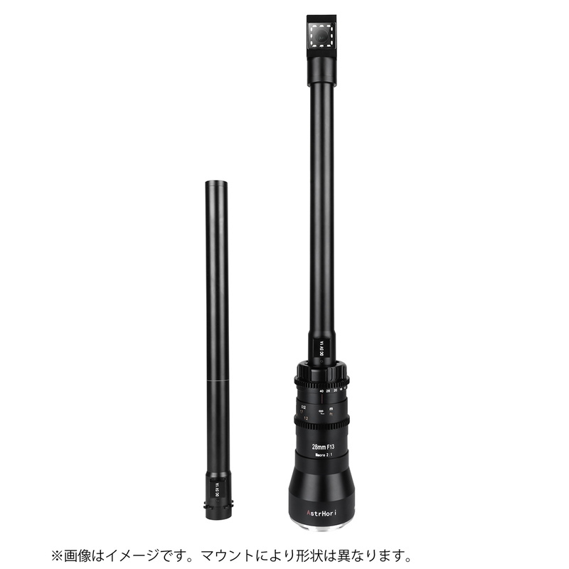 | AstrHori アストロリ 28mm F13 Macro 2:1 ペリスコープレンズ ダブルレンズセット (スタンダード +90°直角)は、昆虫の視点から世界を捉えるために設計された革新的なマクロレンズです。最大撮影倍率2倍と防水機能を備え、新しい視点での撮影体験をお楽しみいただけます。 外観 レンズ本体はメインユニットとペリスコープの2分割構造を採用し、Φ29mm×460mmとΦ23mm × 452mmの2種類の細長い鏡筒が難しいアングルからの撮影も可能にします。絞りリングとフォーカスリングはレンズギアを採用し、動画撮影時にフォローフォーカスを容易にします。 特徴 ・マクロ撮影倍率は2倍で、画角は75度です。 仕様