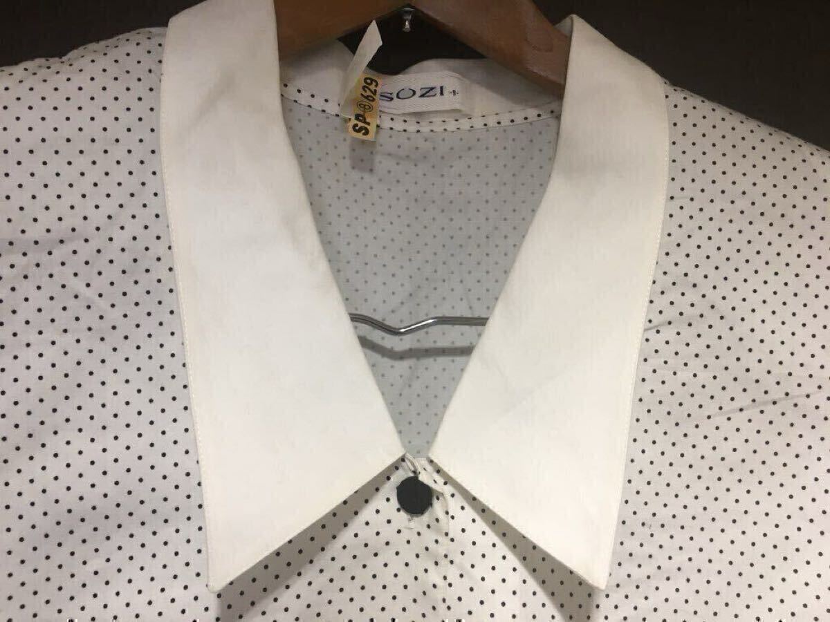 サイズ : 9号 M 上着部分= 身丈→ 46 ・ 胸囲(脇下~脇下一周)→ 90 ・ 肩幅→ 40 ・ 袖丈→ 26 / スカ-ト部分= スカ-ト丈→ 76 ・ ウエスト→ 63