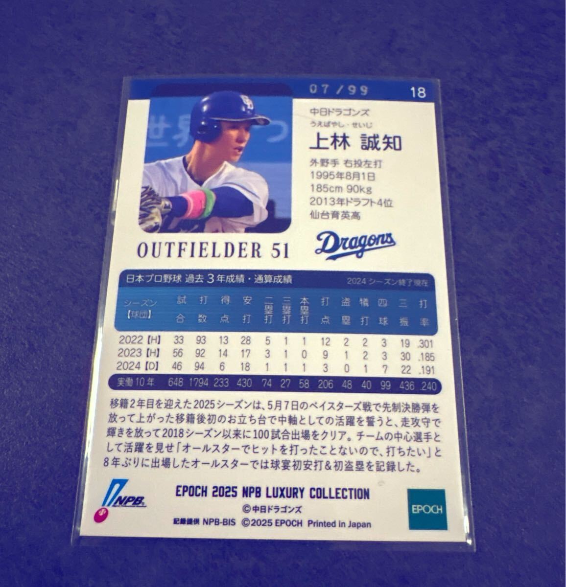上林誠知 EPOCH LUXURY COLLECTION 2025 99枚限定パラレル  中日ドラゴンズ