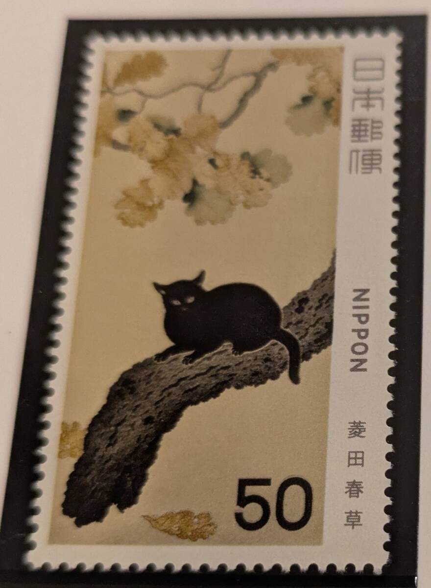 未使用記念切手 近代美術シリーズ 第3集 黒き猫図 菱田春草 50円切手×1枚(額面50円)です。 よろしくお願いいたします。 | ||||