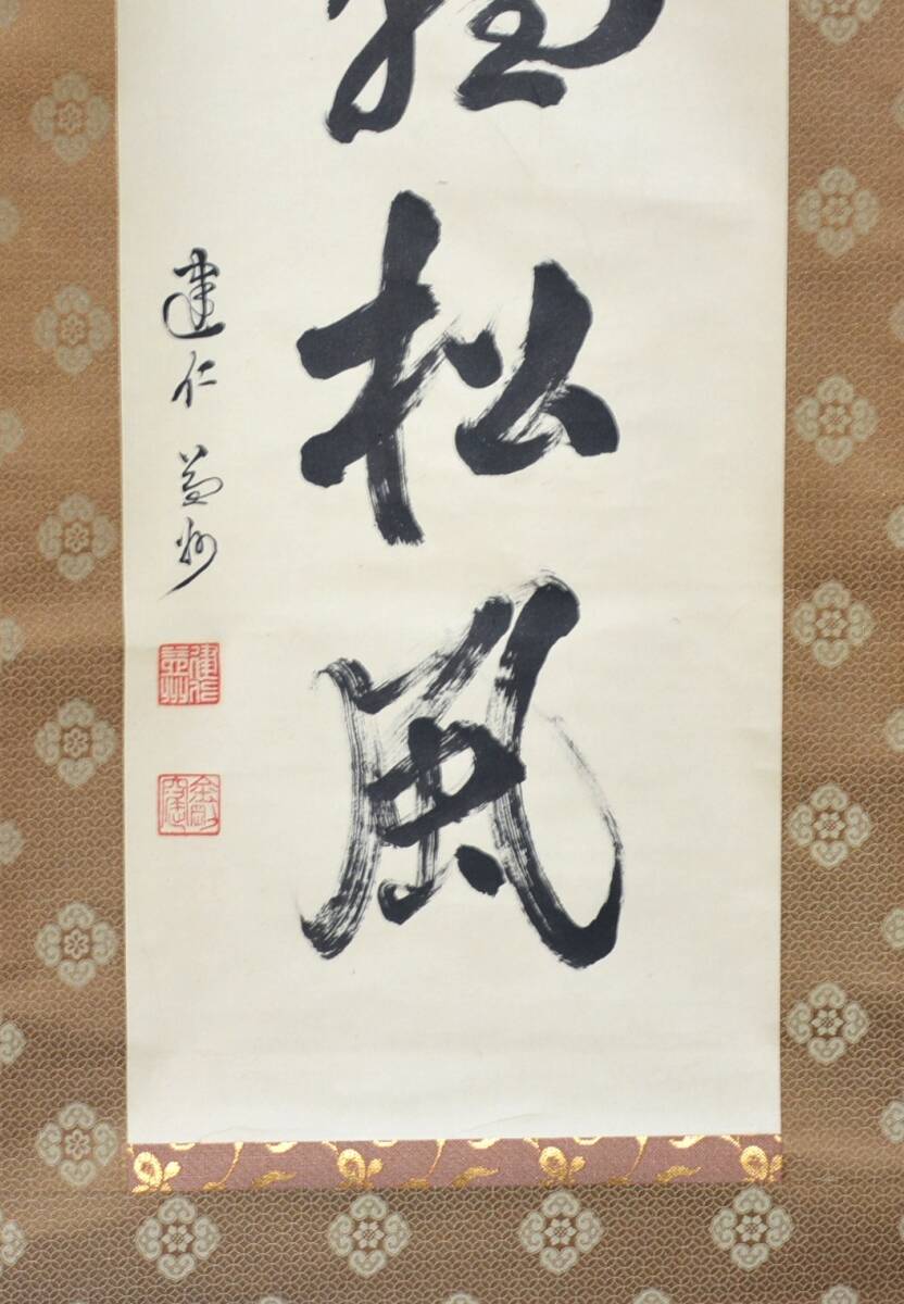 78◆初荷です ◆掛軸 臨済宗建仁寺派管長 竹田益州(金剛窟) 「閑坐聴松風」 一行書 紙本 真作 ◆保存箱 茶掛