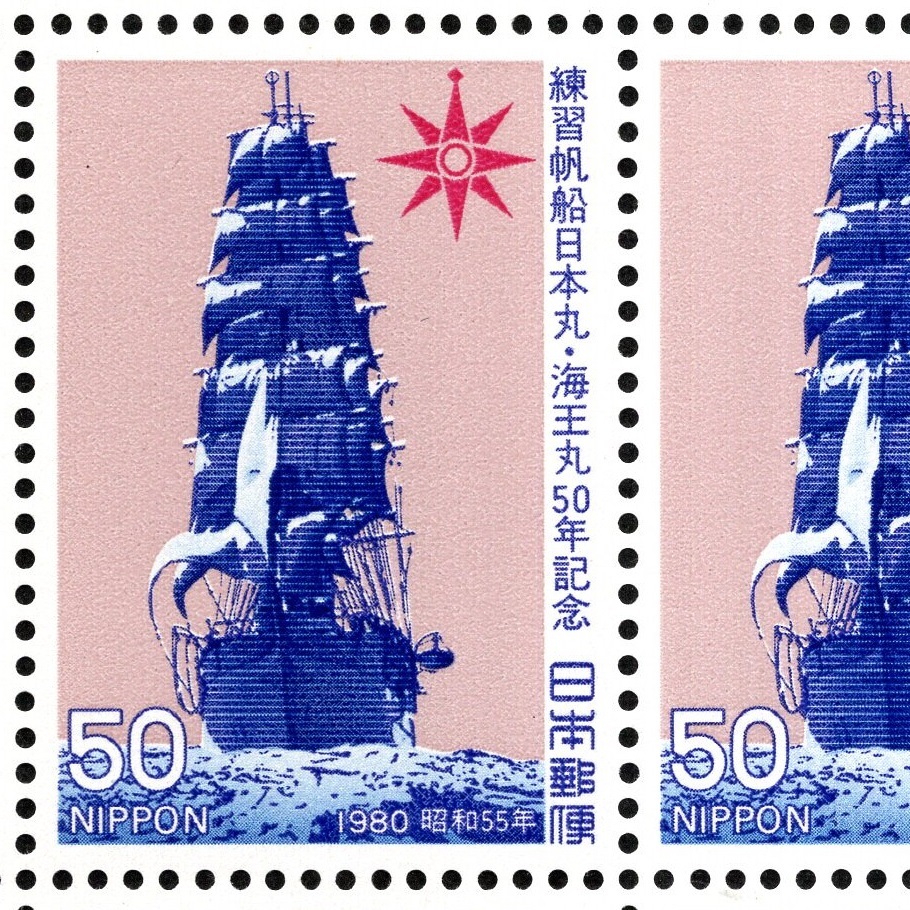 郵便切手シート 「練習帆船日本丸・海王丸50年記念」 1シート 1980年5月17日 Stamps Ships Practice sailboat Sailing ship for training