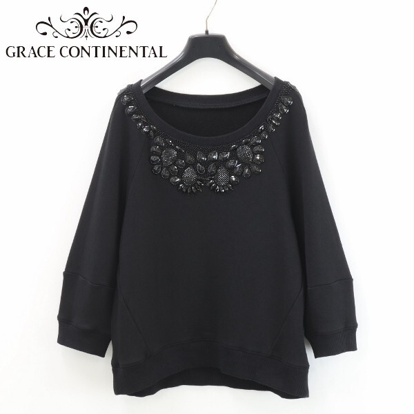 | 【KA405】美品◆GRACE CONTINENTAL グレースコンチネンタル ビジュー装飾 スウェット トレーナー トップス プルオーバー 黒 ブラック 38 | |