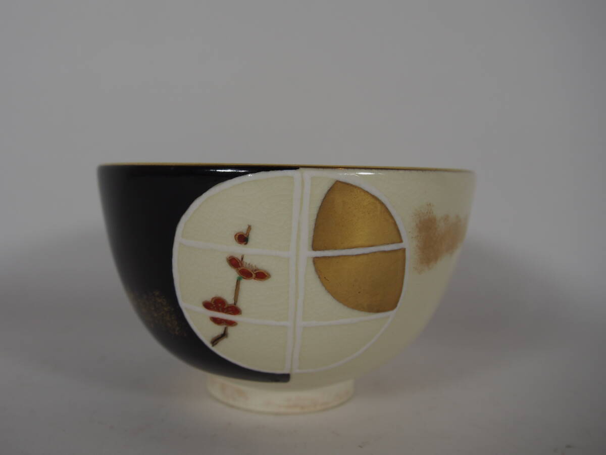 京焼 窓に月絵  抹茶茶碗  在銘     茶道具 25 1019-42-3