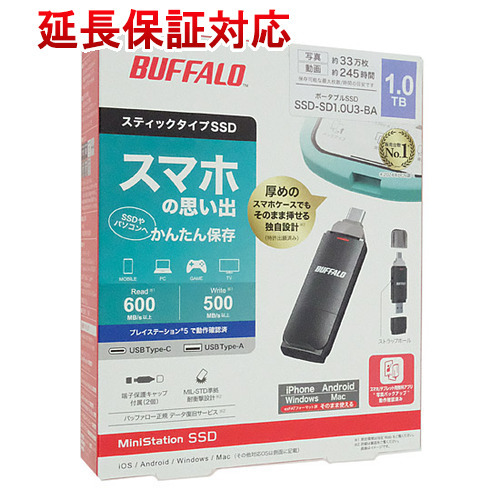 | BUFFALO スティック型SSD SSD-SD1.0U3-BA 1TB ブラック | |