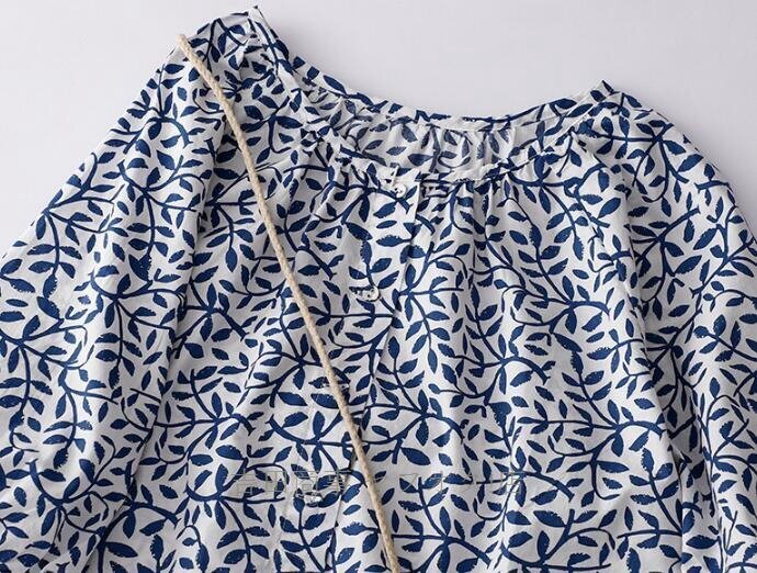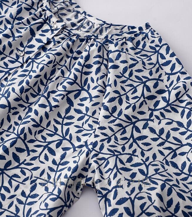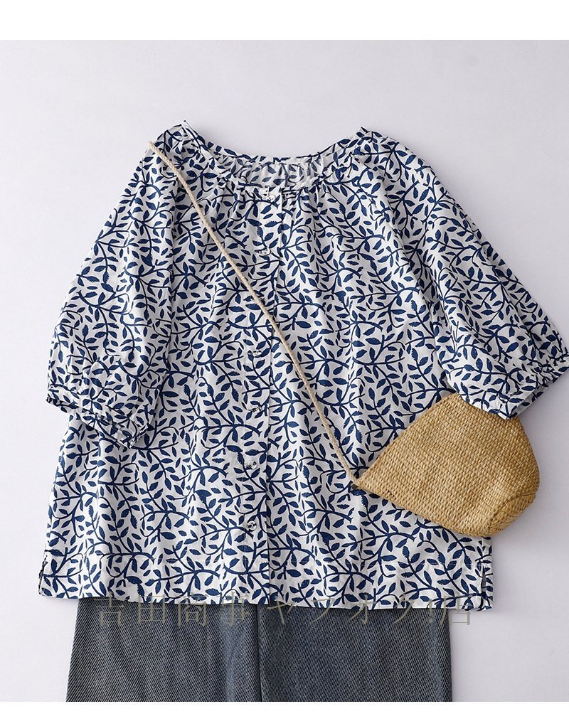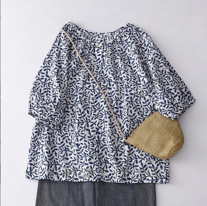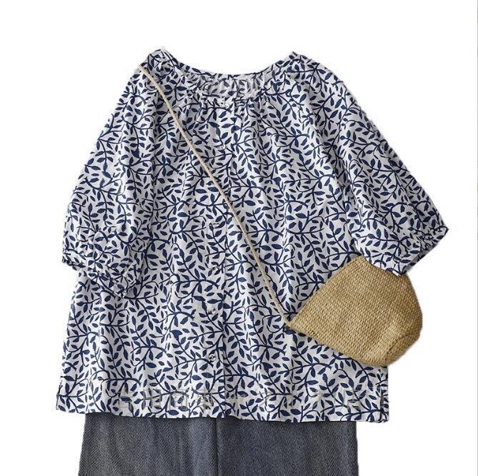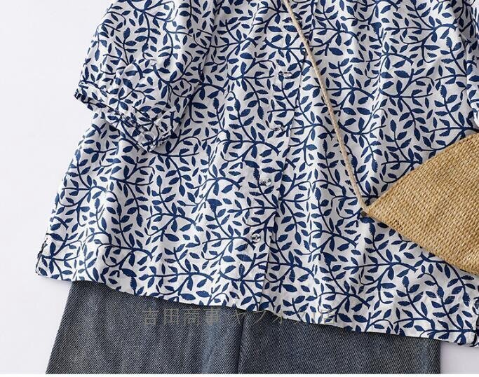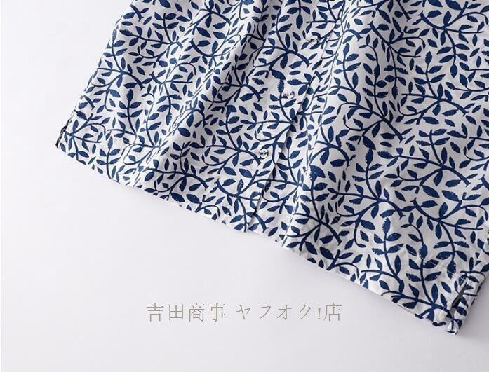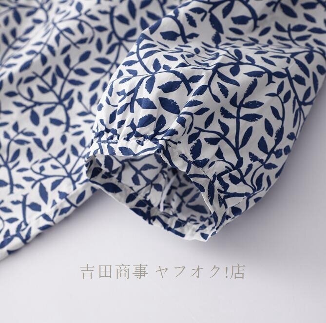 ☆新品 チュニック 半袖 夏 ブラウス シャツ レディース 綿麻風シャツ 花柄 総柄 チュニック トップス コットン リネン混 森ガール Lサイズ
