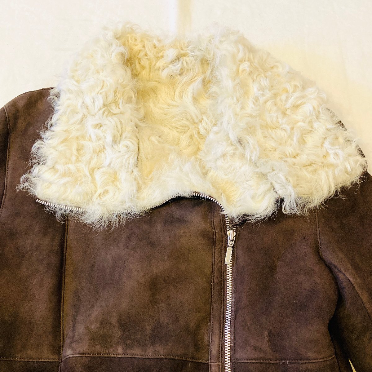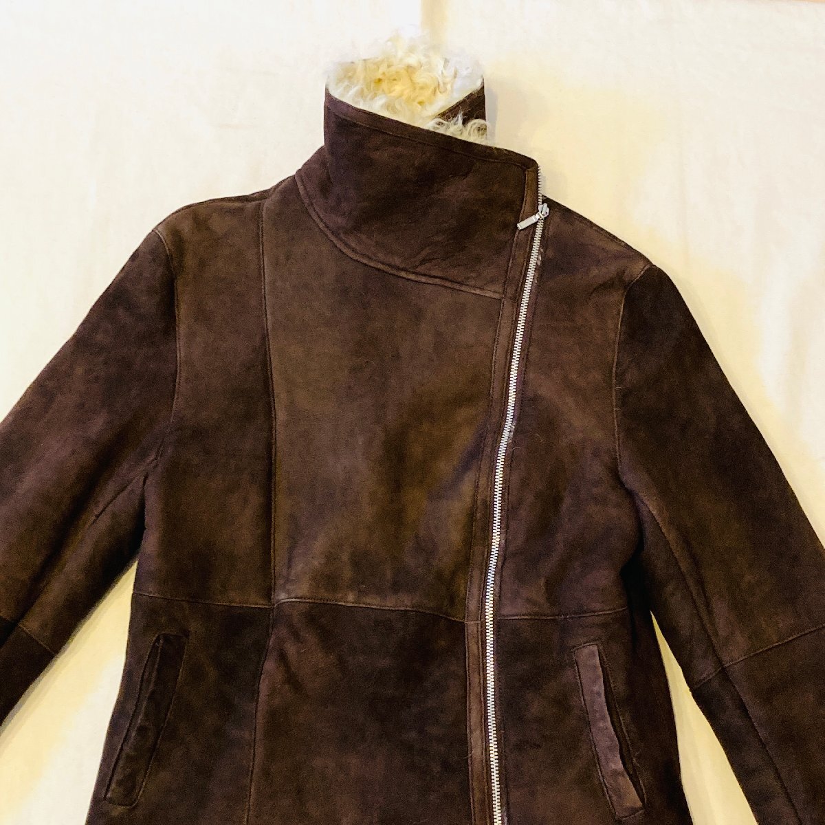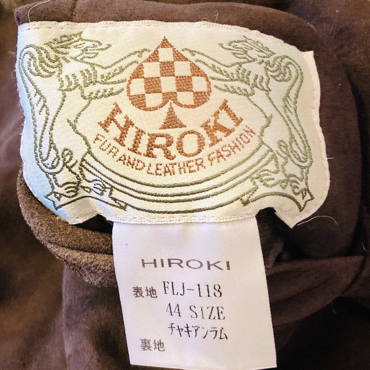 HIROKI ヒロキ FUR AND LEATHER FASHION 最高級 チャキアンラム 仔羊革 スエード ファー/毛皮 ライダース ジャケット ブラウン 44