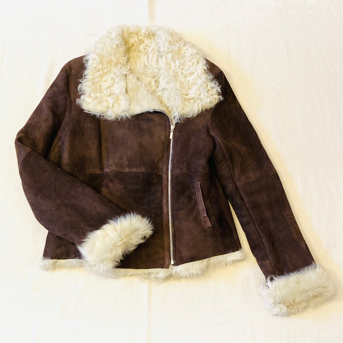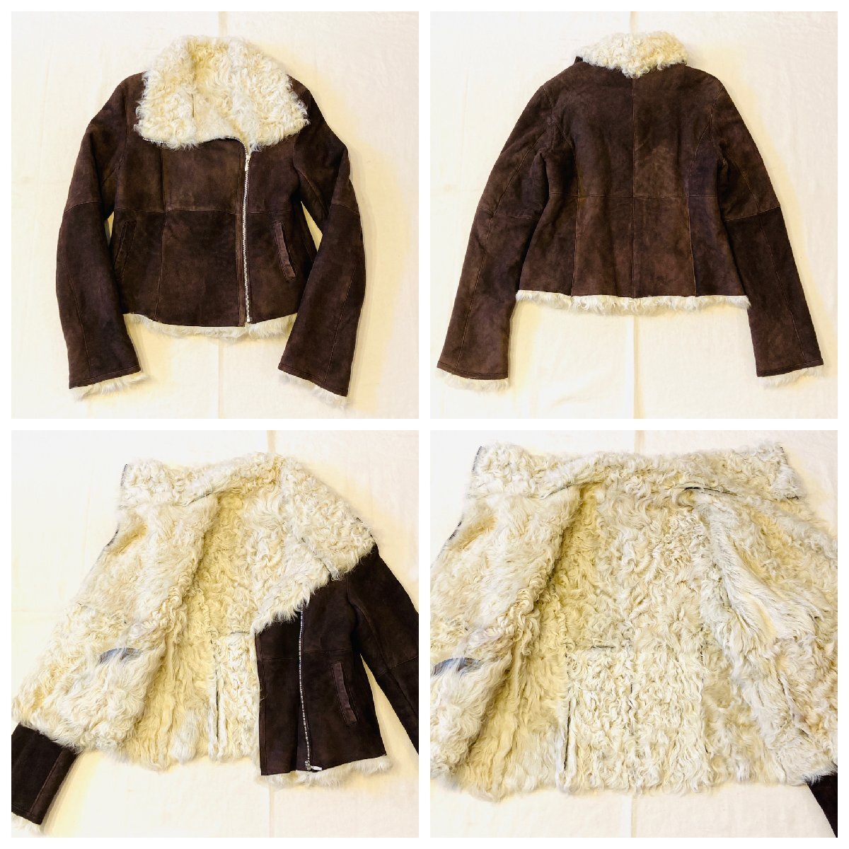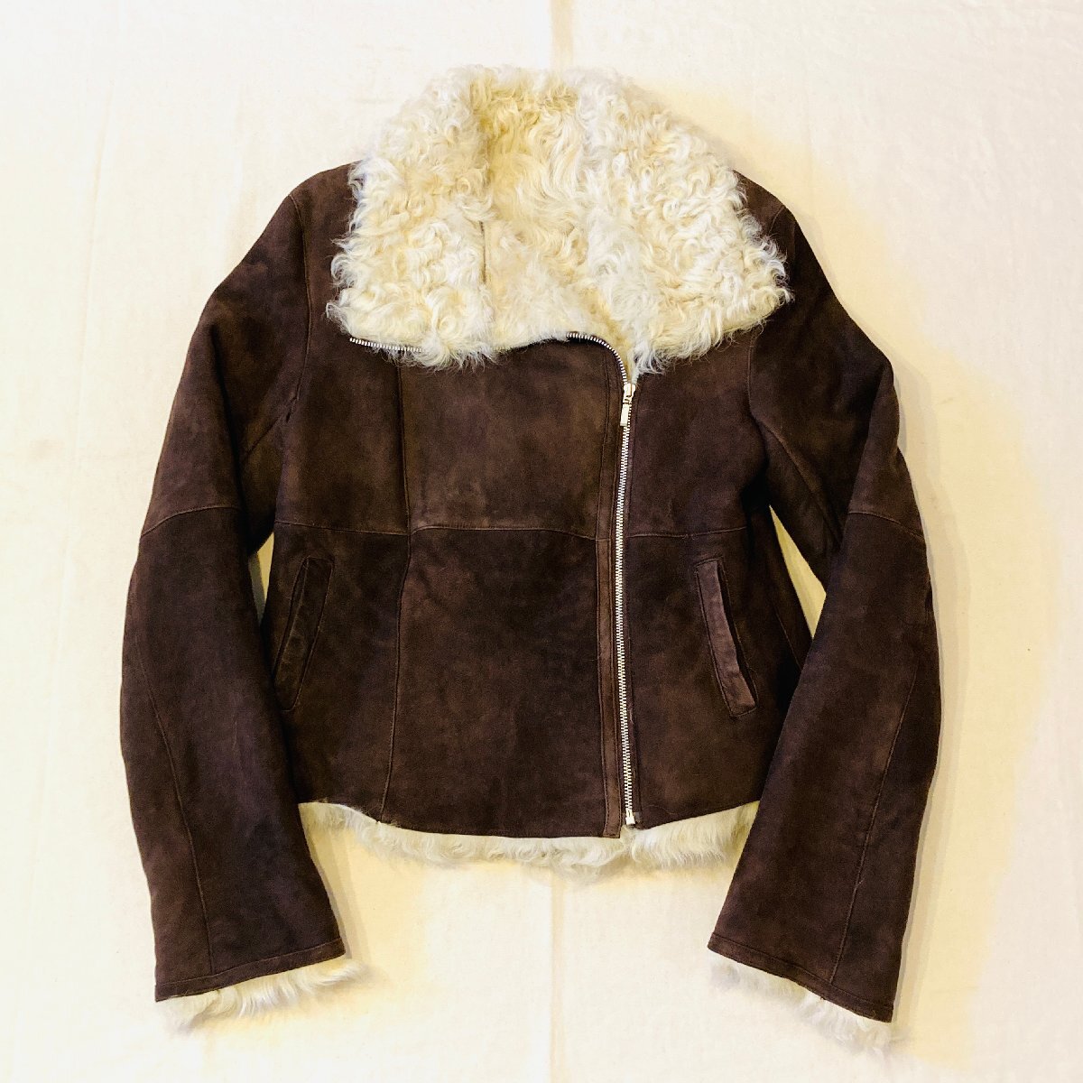HIROKI ヒロキ FUR AND LEATHER FASHION 最高級 チャキアンラム 仔羊革 スエード ファー/毛皮 ライダース ジャケット ブラウン 44