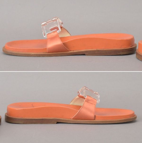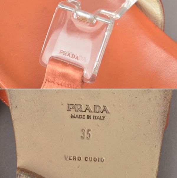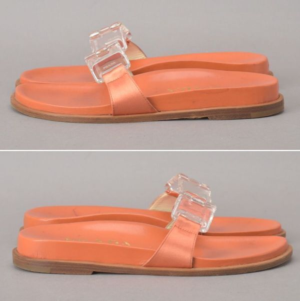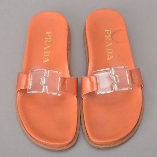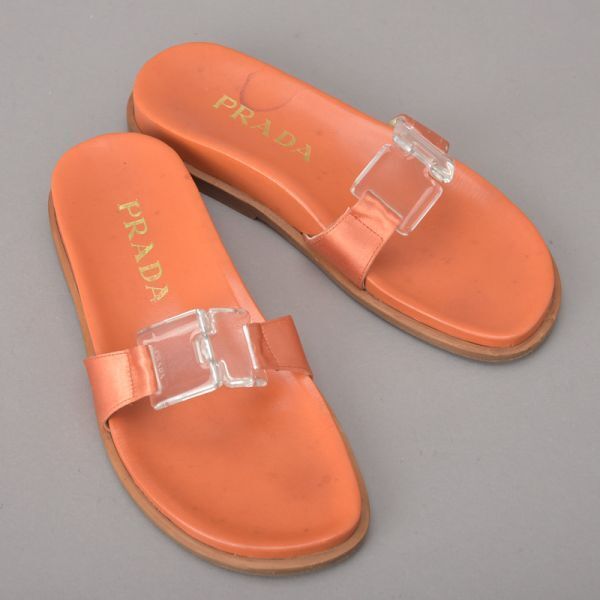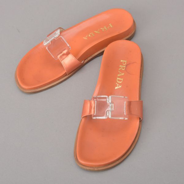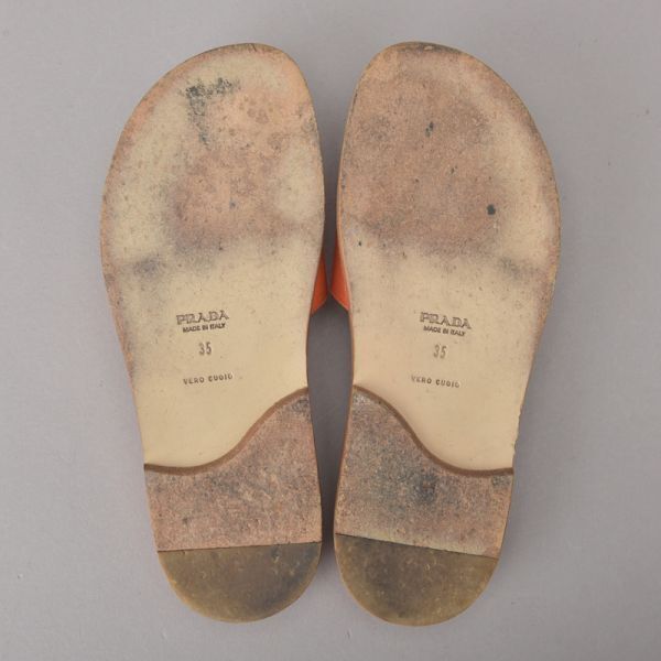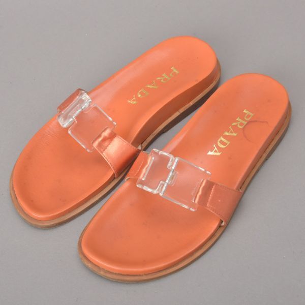 PRADA プラダ RASO サンダル 35 22.5cm~23cm オレンジ 箱付き レザー スリッパ ミュール ぺったんこ シューズ 靴 /060807-09/k.c/k.c