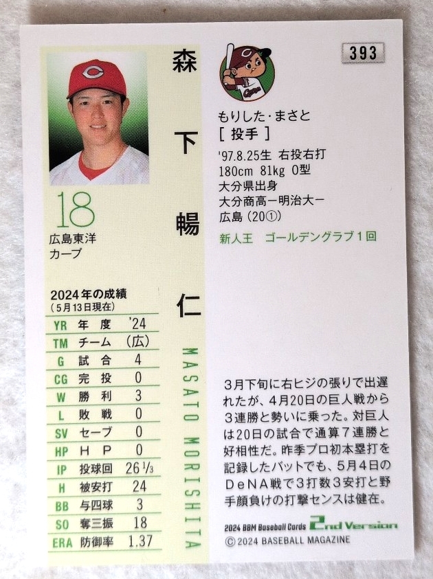 ★銀箔サイン★ 森下暢仁 広島東洋カープ BBM 2nd Ver 2024