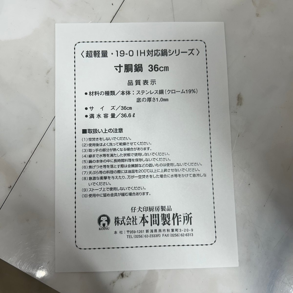 | &OG& 【未使用品】 仔犬印 本間製作所 寸胴鍋 超軽量 36cm 19-0 IH対応 36.6L ステンレス 業務用 厨房 調理機器 &H-251048 | ||