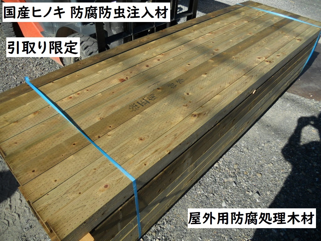 | 国産ヒノキの乾燥材を防腐防虫処理した商品となります。 注入前に乾燥済みの方が水分少ない為にその分薬剤が浸透しますが、薬液が大量に浸透しますので元は乾燥材ですが未乾燥扱いとなり多少膨れます 建築リフォーム材の大引き・ウッドデッキ土台 束・屋外柱・趣味工作などにご利用ください。 簡単にプレーナーがしてあります。製材所の加工ですのでオマケ程度に余り期待しないでください。 桧材多数出品しておりますので、数量必要な方などもご検討ください。 | |