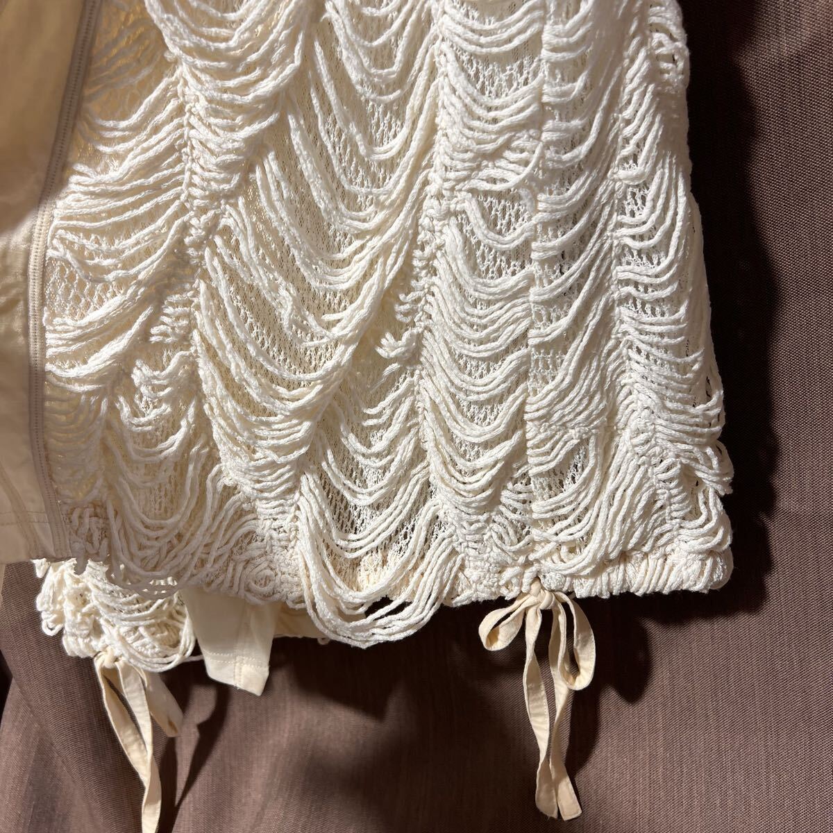 フリンジ及びル-プ部分は大変デリケートで、非常に引っかかりやすいため、取り扱いに十分注意し、長時間の着用やアクセサリーとの摩擦は避けること。