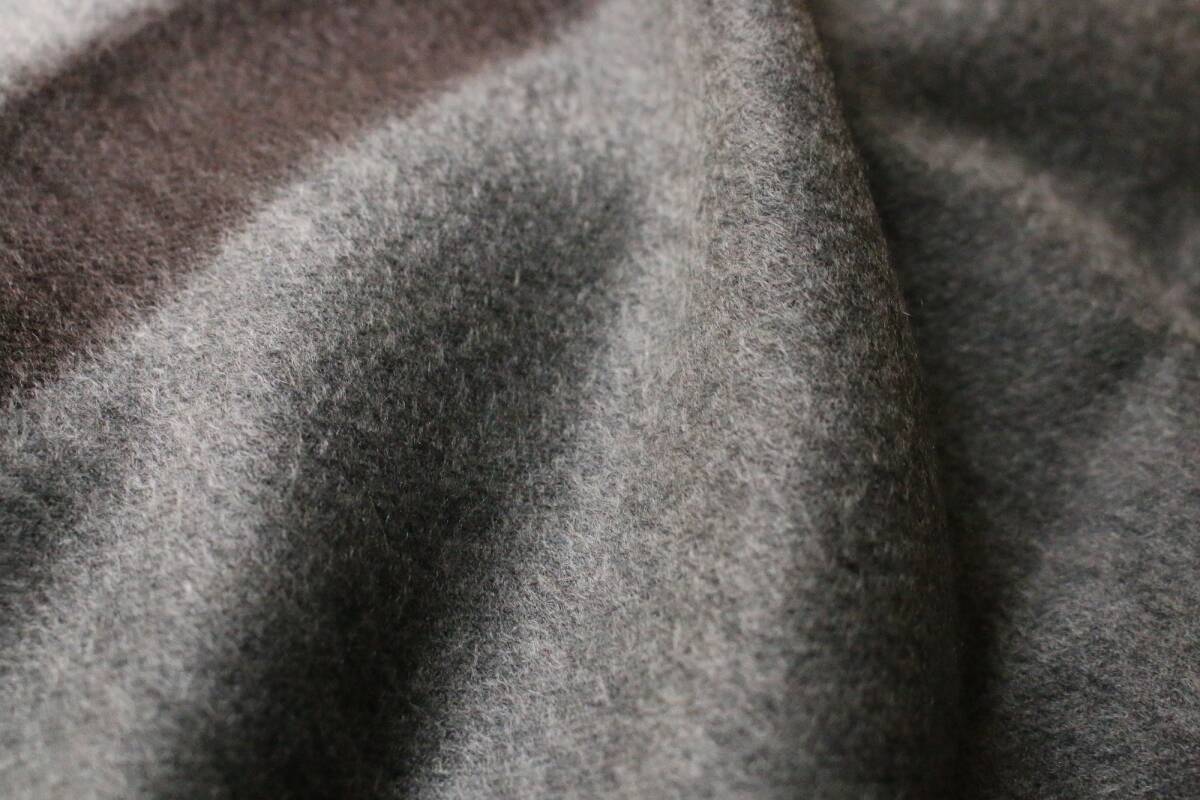 そんなベグアンドコー(国内正規輸入品です)より、どんな上着にも合わせやすいライトグレーをベースにしつつ、ストール先端部分のみ、片側にはネイビー、もう片側にはブラウンと、アズーロエマローネの差し色を配した一本です。