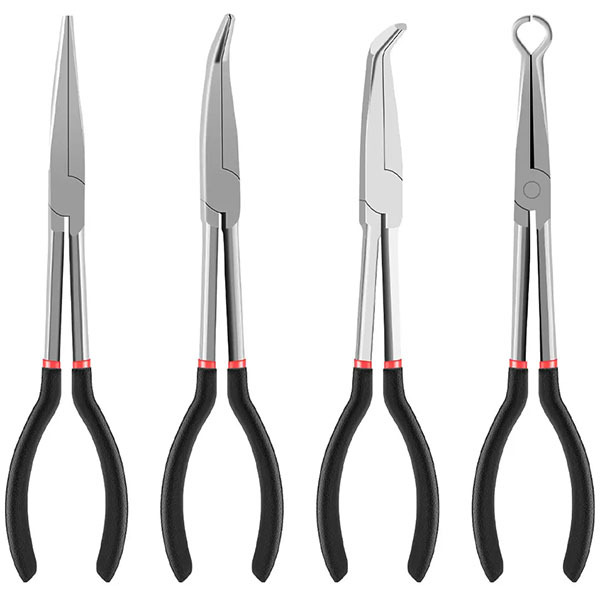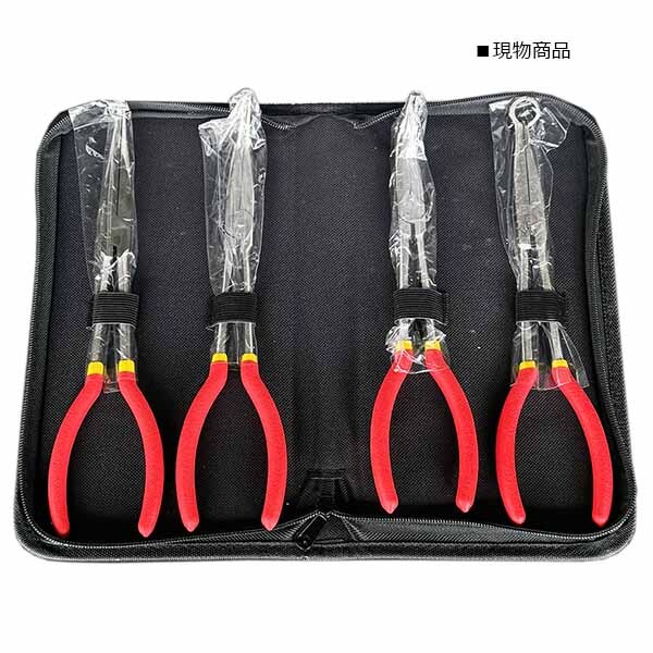 | 商品詳細 | 4種類のロングリーチプライヤーセット このロングリーチプライヤーセットは、多様な用途に対応するための4種類のプライヤーが含まれており、さまざまな作業シーンで活躍します。以下に各プライヤーの詳細を説明します。 1. ストレートニードルノーズプライヤー ストレートノーズプライヤーは、狭い場所や深い場所にある小さな部品をつかむのに最適です。 2. 45度ベントノーズプライヤー 45度ベントノーズプライヤーは、角度のついた作業が必要な場合に役立ちます。 3. 90度ベントノーズプライヤー 90度ベントノーズプライヤーは、非常に狭い場所や手が届きにくい箇所での作業に最適です。 4.O形プライヤー O形プライヤーは、丸い部品やワイヤーの曲げ加工に特化しています。特に、自動車のメンテナンスや機械の修理において重要な役割を果たします。 また専用の収納ポーチもついていますので、持ち運びや保管に便利です。 ■商品仕様 ・全長:26-28cm ・B級品(手作業による製品のため、個体ごとに品質に差がある場合があります。高品質な仕上げにこだわるお客様にはおすすめいたしかねます) |