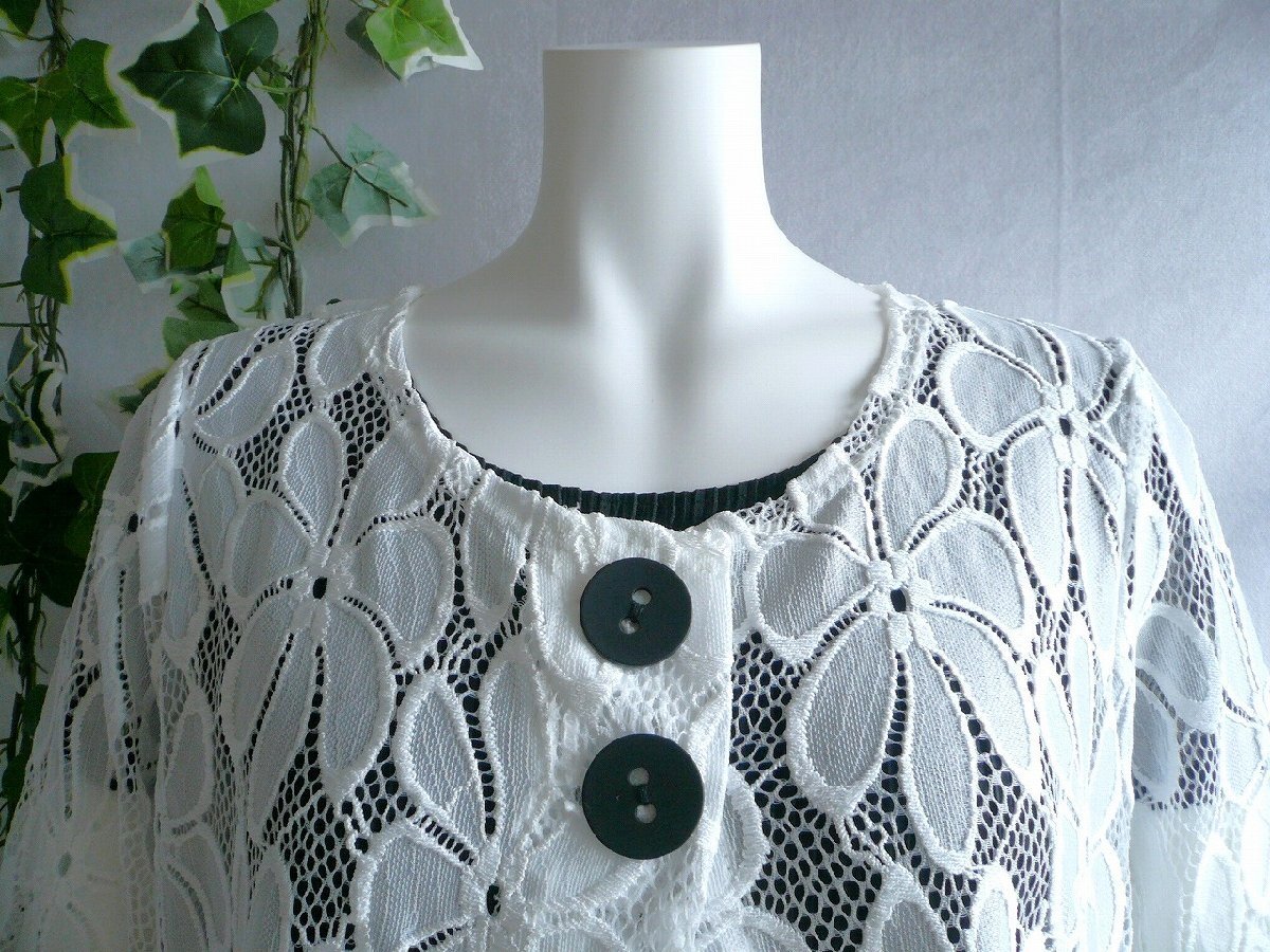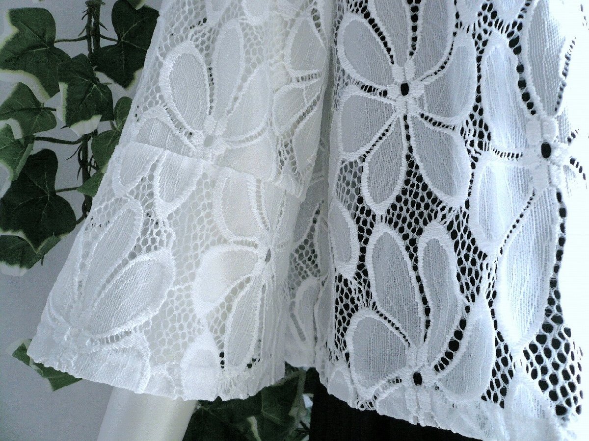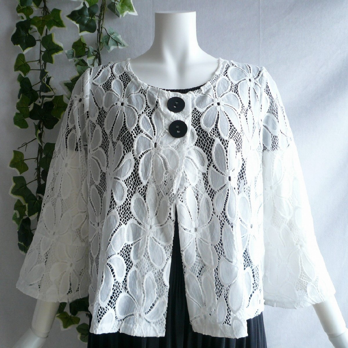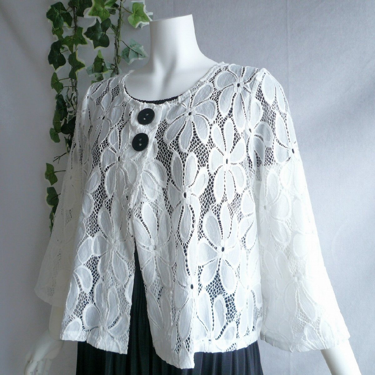新品 9595 ML カットワーク 刺繍 クロシェ レース フレア ジャケット 春 夏 白 レディース ノーカラー 七分袖 上質 上品 50代 60代 70代