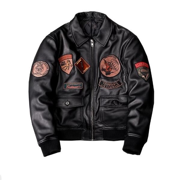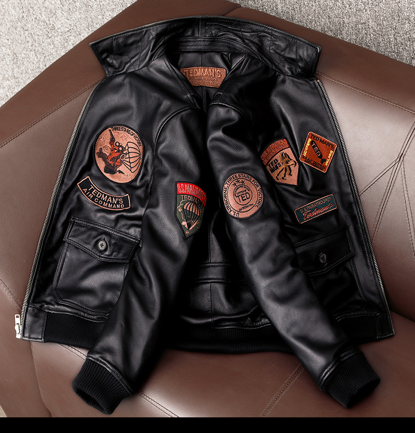 新品/綺麗フライトジャケット レザージャケット 羊革 ライダースジャケット 革ジャン カウハイド メンズファッション 刺繍 バイクレザー