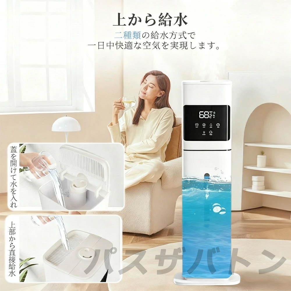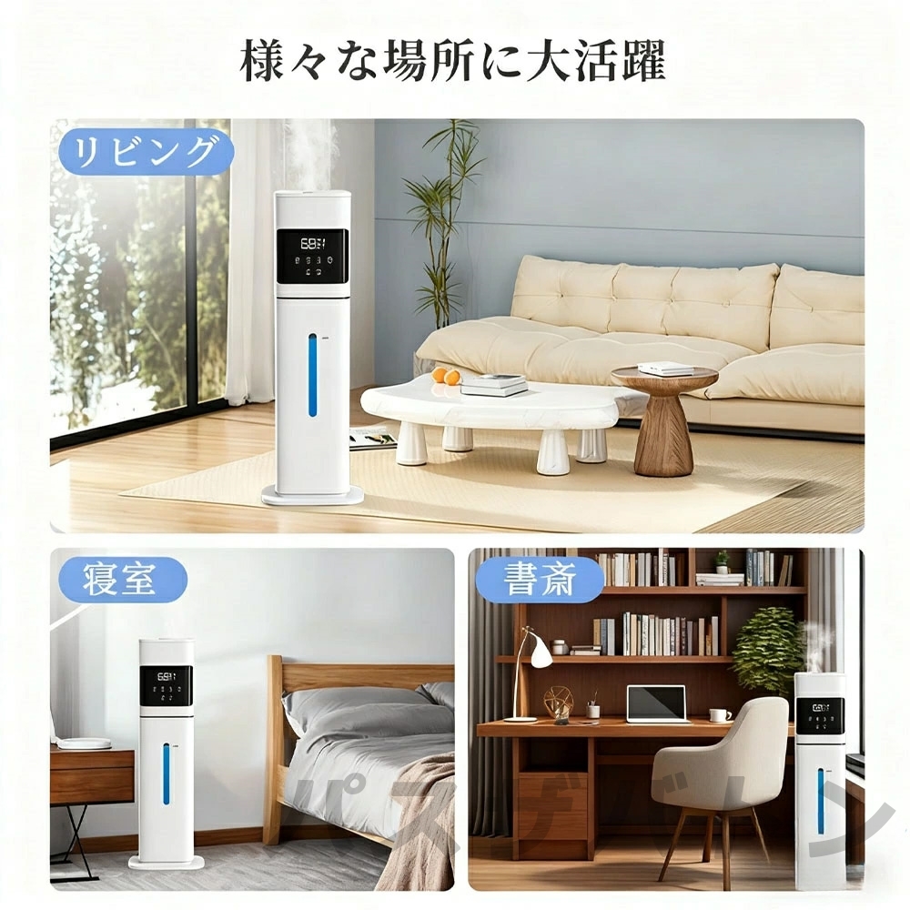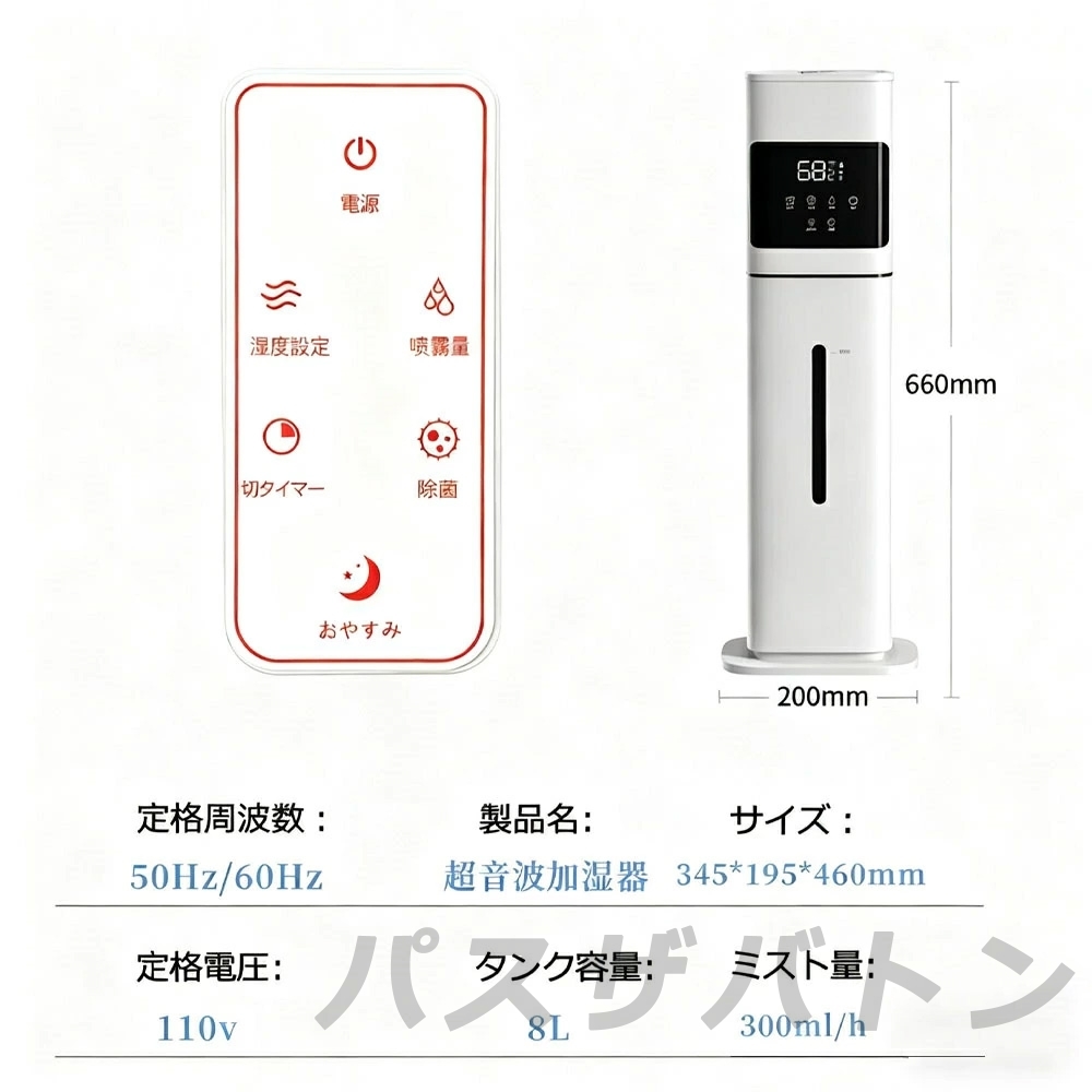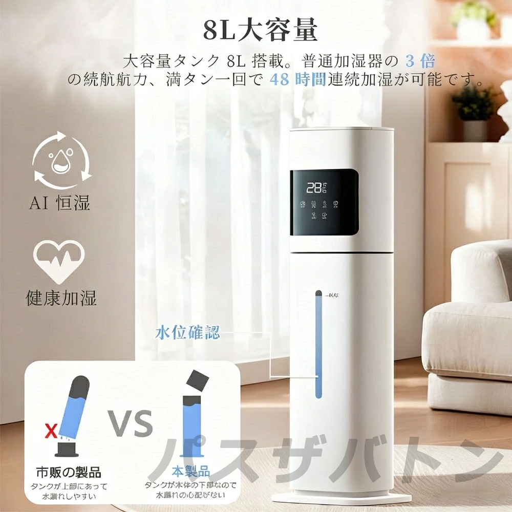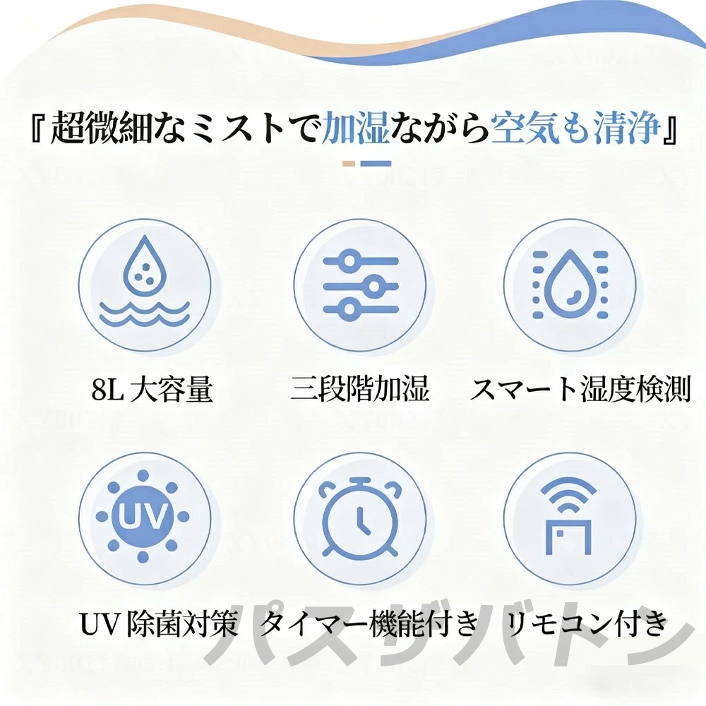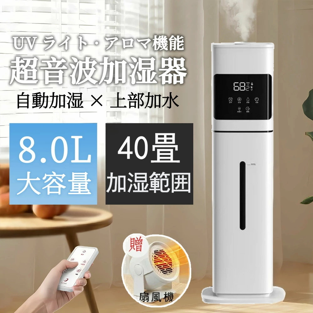 加湿器 大容量 UV除菌&湿度設定 8L 空気清浄機 超音波 加湿器 次亜塩素酸水対応 40畳 3段階ミスト調節 タイマー 静音 リモコン付